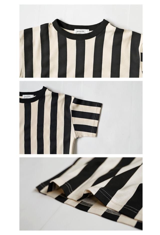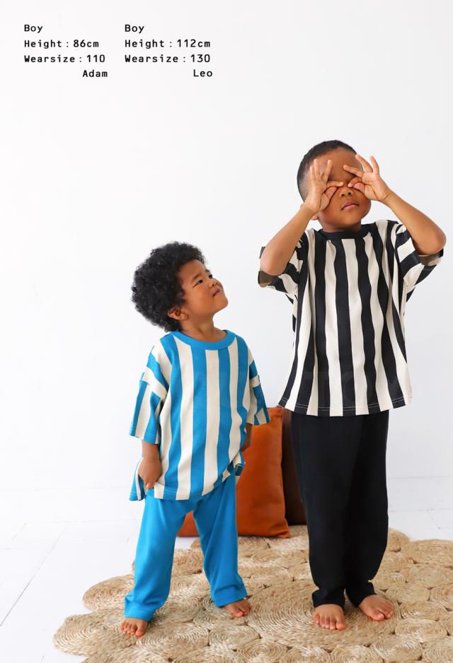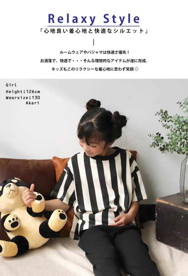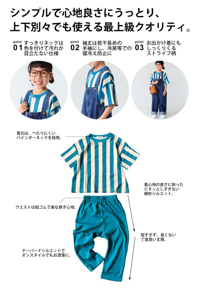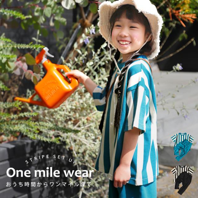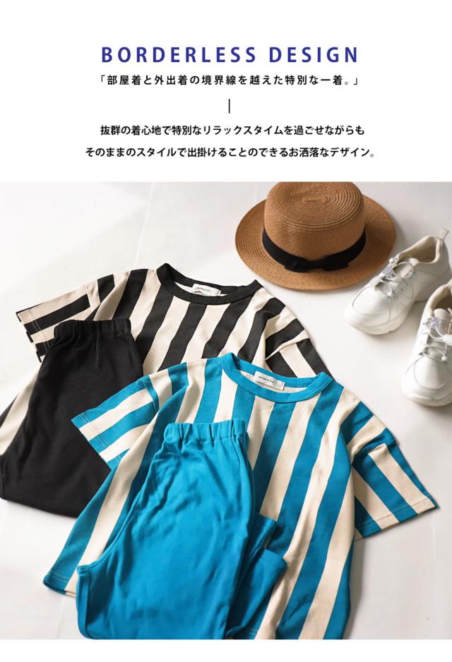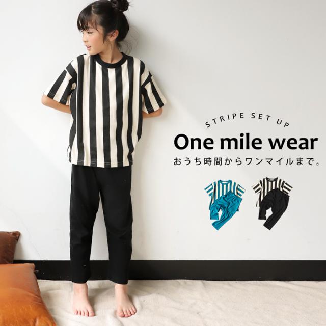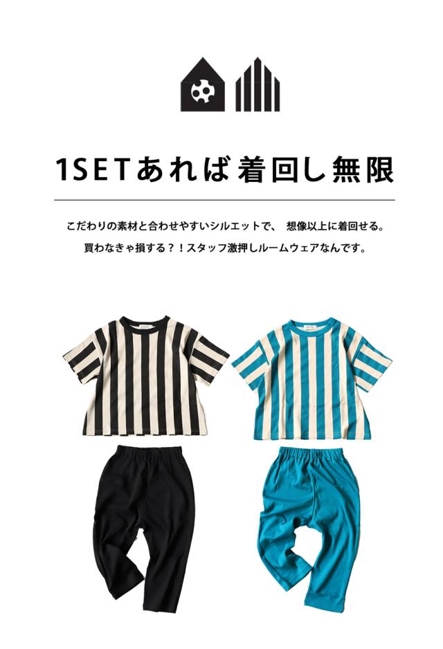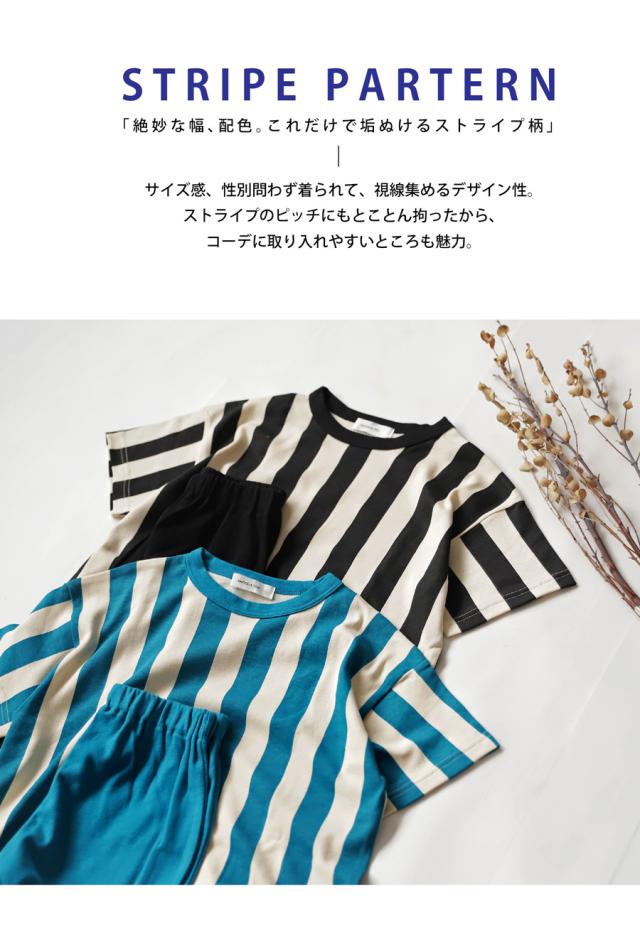 tma-00007 キッズ 子供服 男の子 女の子 ジュニア 低学年 高学年 柄 ストライプ 上下 セット 半袖 綿100 ゆったり ワンマイルウエア 2点セット パジャマ シンプル 部屋着