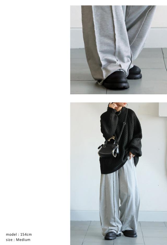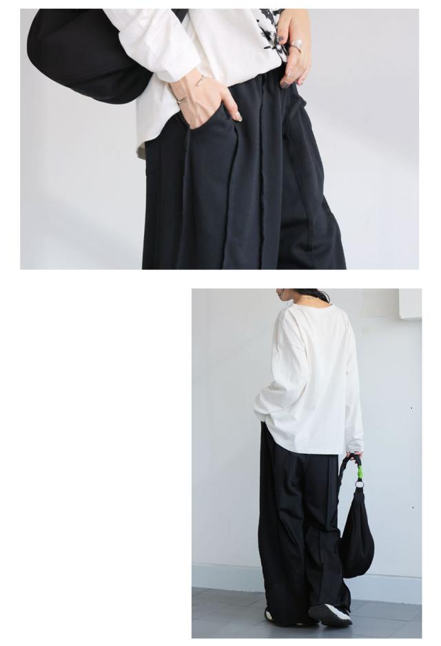yz-00107 ボトムス スウェット ロングパンツ 長ズボン 無地 ゆったり ワイドシルエット シンプル ウエストゴム リラクシー ワンマイルウェア イージーパンツ 体型カバー ポケット付き