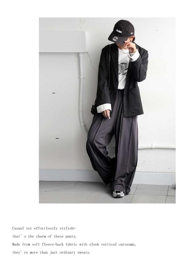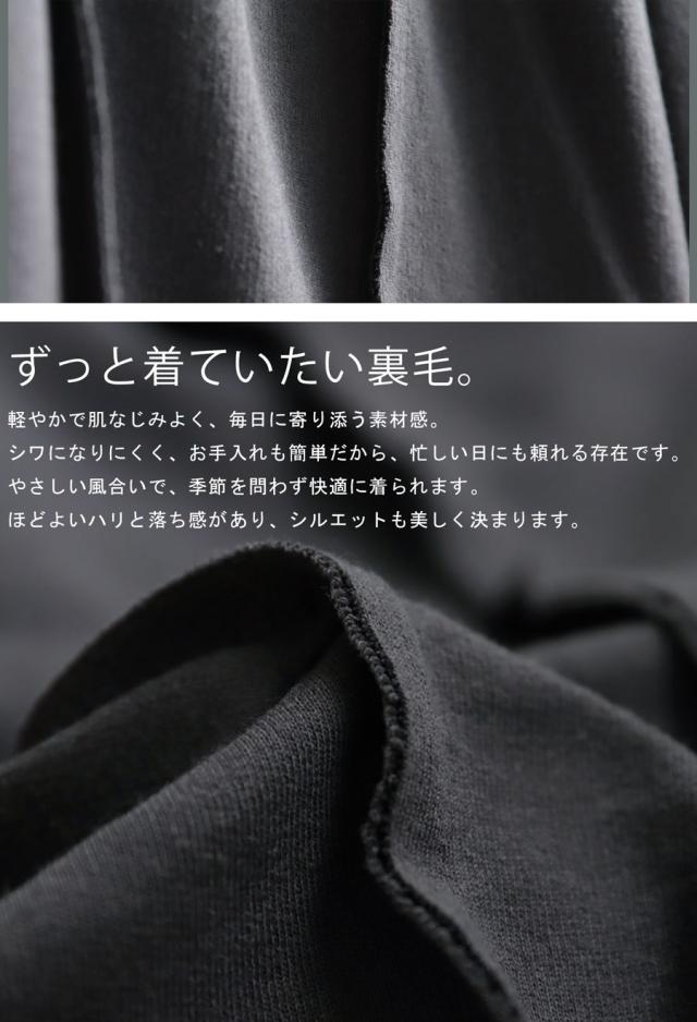 柔らかくふんわりとした裏毛素材は、ルームウェアのような快適さがありながら、外にも出かけたくなる上品な仕上がり。