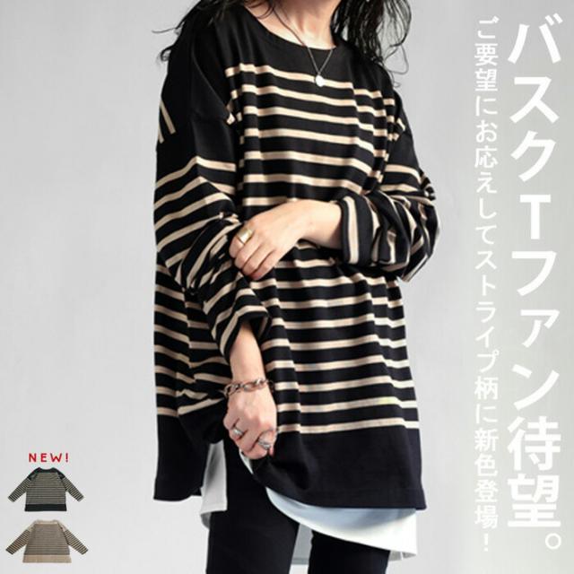 ポイント10%対象!29日20時〜3日10時 バスクロンT ロンT レディース トップス 長袖 ボーダー柄 柄・再入荷 (100)メール便可