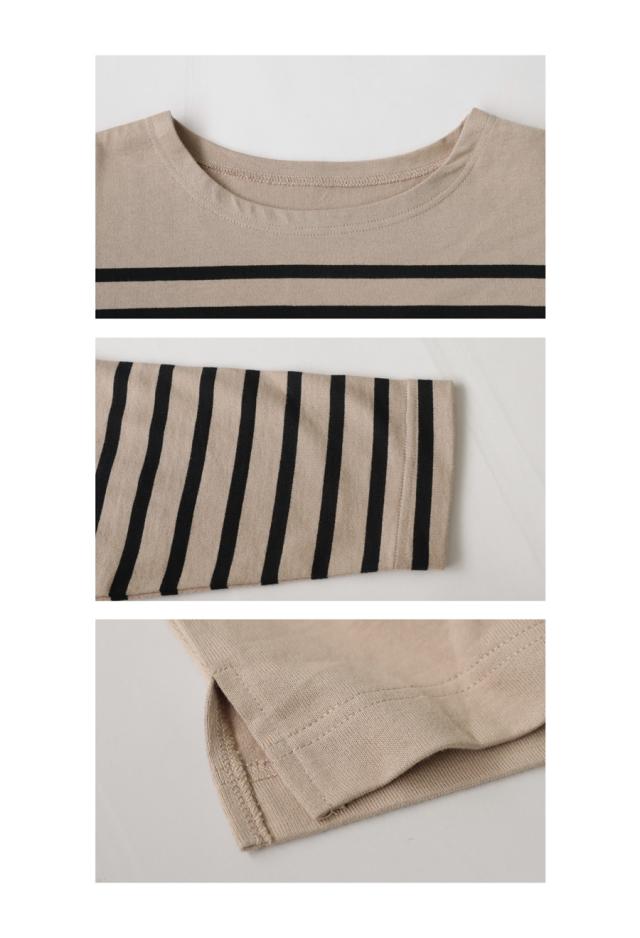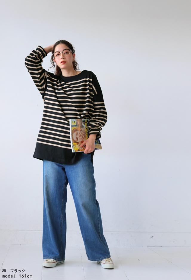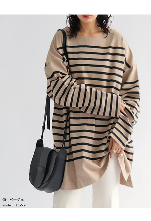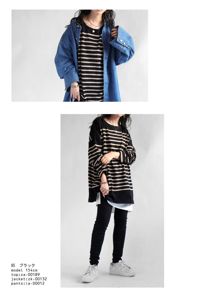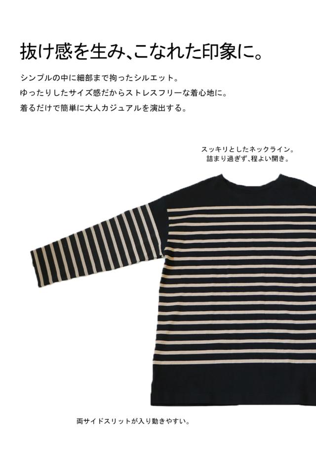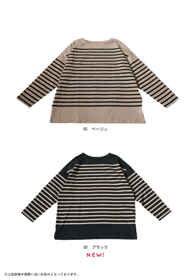 za-00189 綿100 バスク ゆったり シンプル ビッグT Tシャツ ボートネック カットソー バスクT 綿 コットン スリット へたらない 丈夫 バスク生地 定番 着回し オーバーサイズ