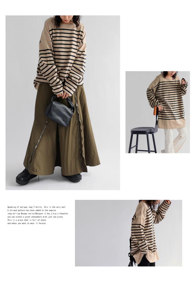 【検索ワード】バスクロンT ロンT レディース トップス 長袖 ボーダー柄 柄 綿100 バスク ゆったり シンプル ビッグT Tシャツ ボートネック カットソー バスクT 綿 コットン スリット へたらない 丈夫 バスク生地 定番 着回し オーバーサイズ 大きめ 大きいサイズ ユニセックス antiqua treecafe アンティカ ツリーカフェ 大人 おしゃれ 10代 20代 30代 40代 50代 60代 春 秋 冬 お洒落 カジュアル かわいい かっこいい あんてぃか