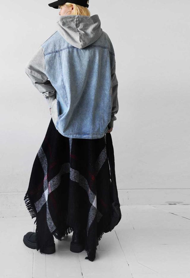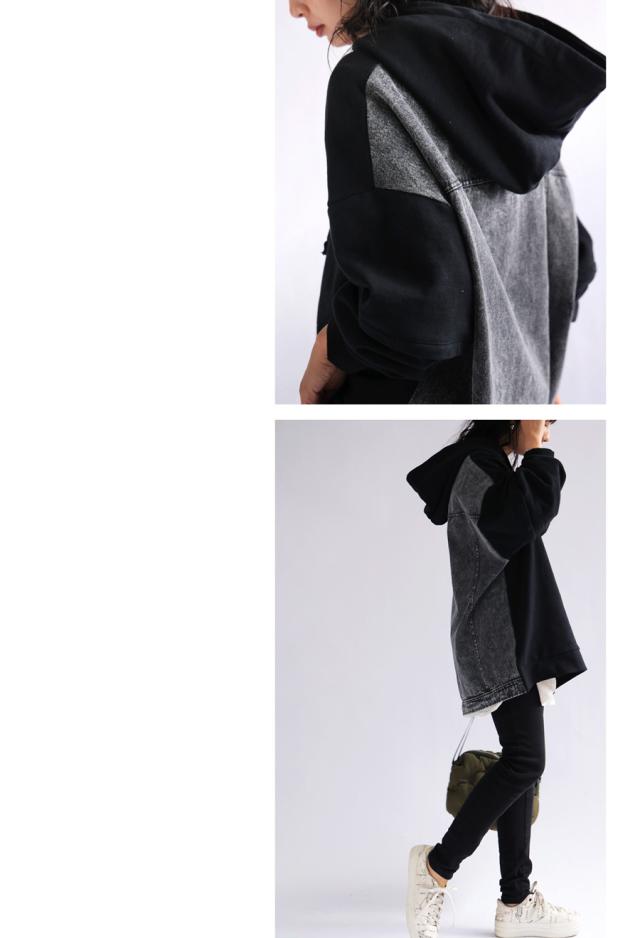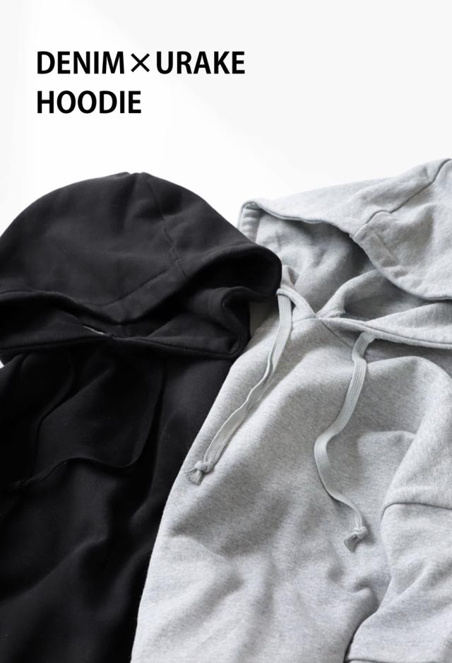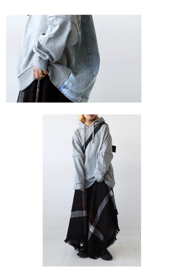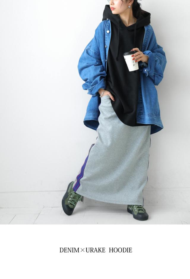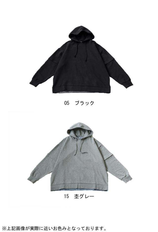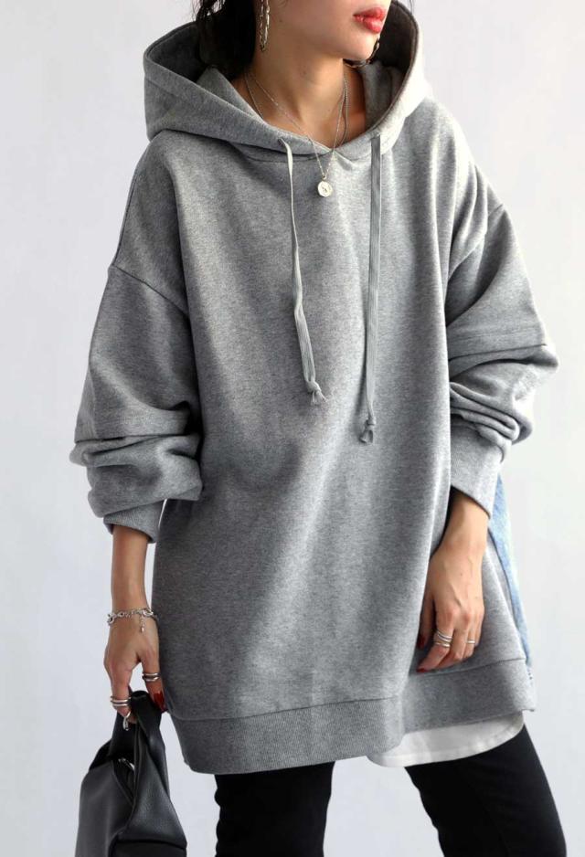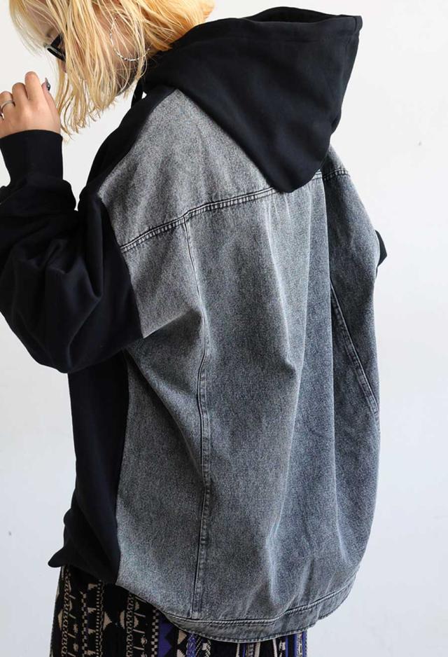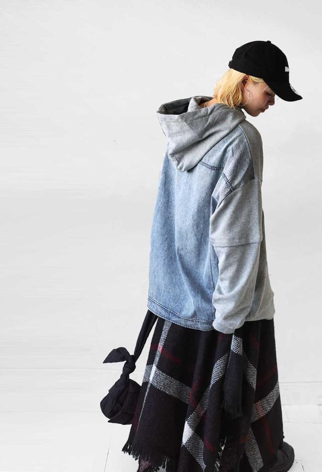 za-00198 プルオーバー フード付き ミニ裏毛 デニム 切り替え 異素材 ドッキング フーディー ゆったり 裏毛 裏毛トップス 裏毛パーカー スウェット 綿100 大きいサイズ