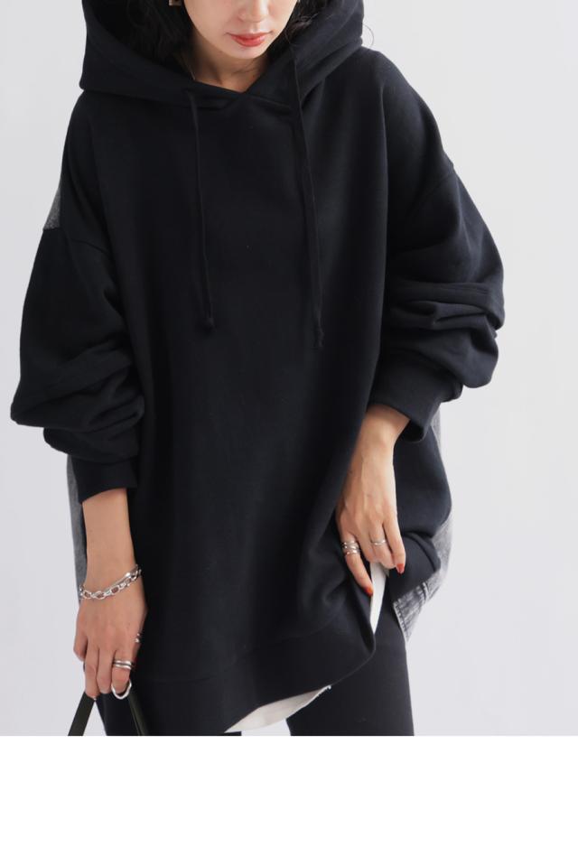 ポイント10%対象!29日20時〜3日10時 異素材切替パーカー パーカー レディース トップス 長袖 送料無料・再入荷 メール便不可