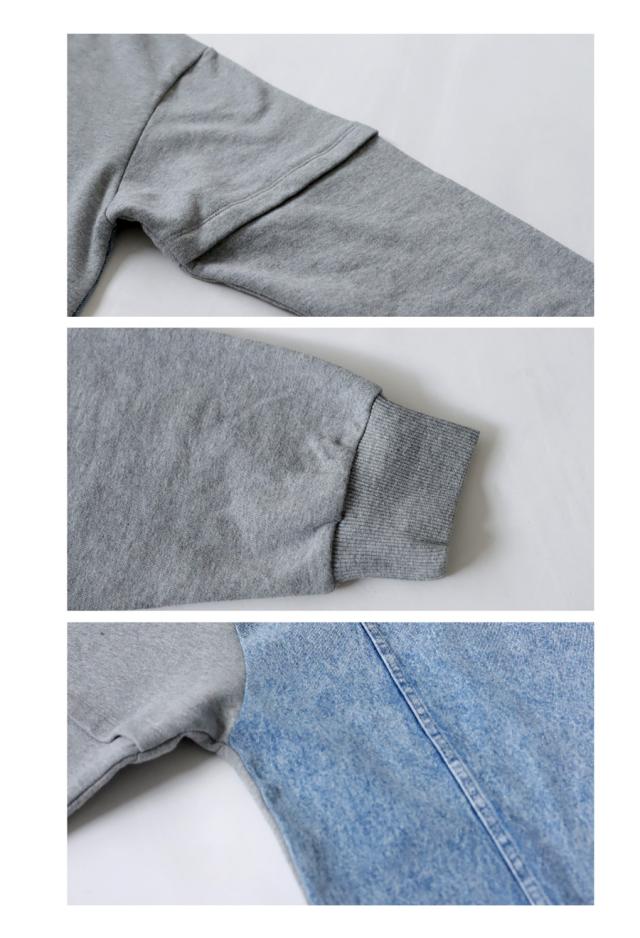 前身頃はミニ裏毛、後ろ身頃はデニム素材で仕上げ、どこから見てもお洒落な印象に。