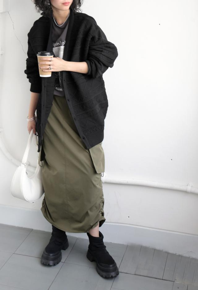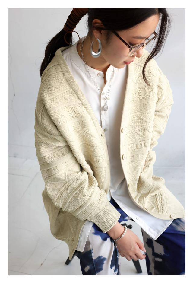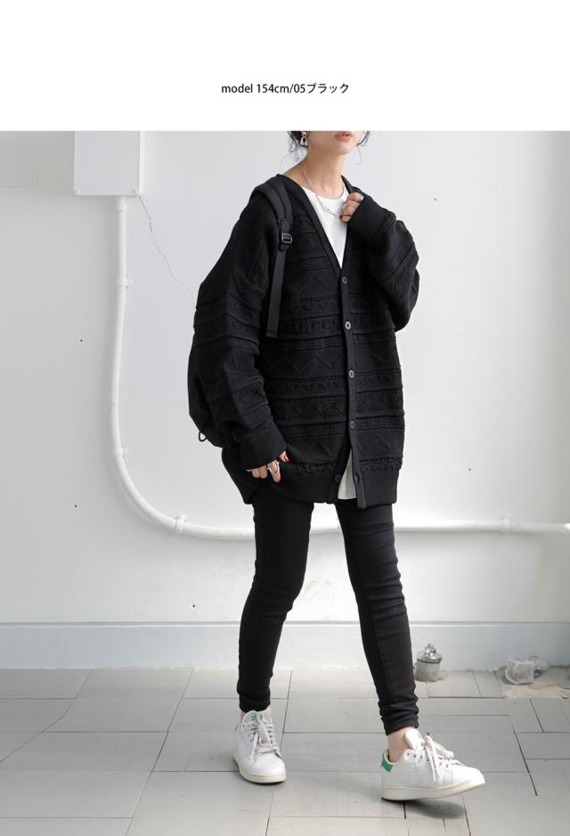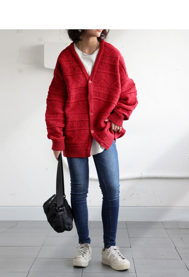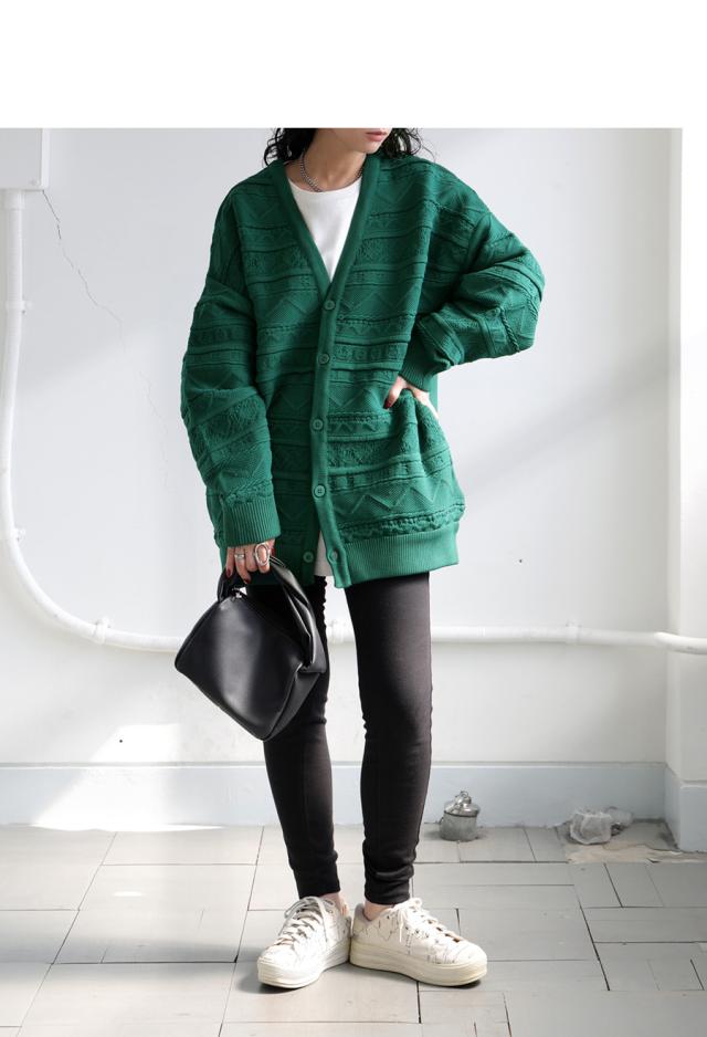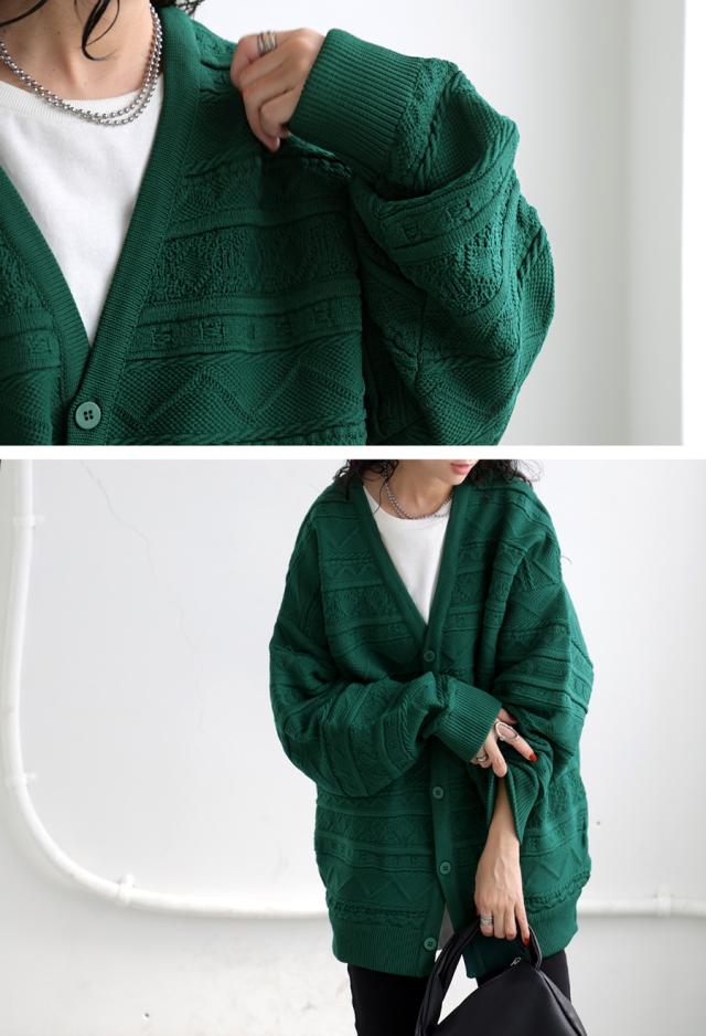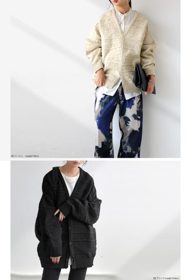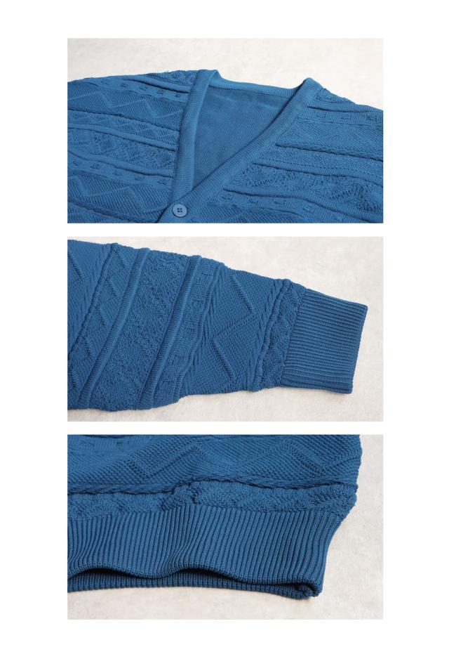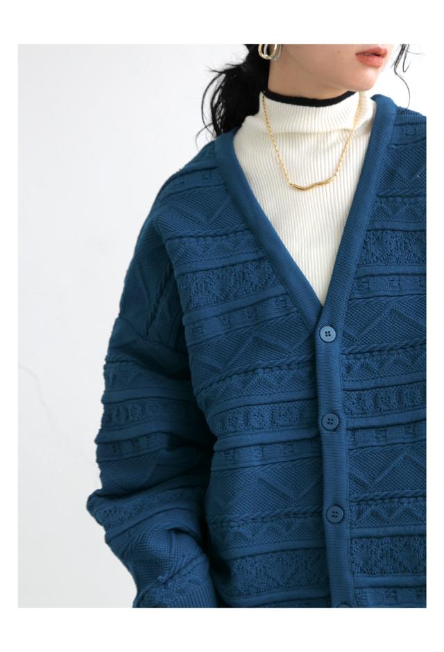 模様の立体編みが表情作る、3Dジャガードニットカーディガン。