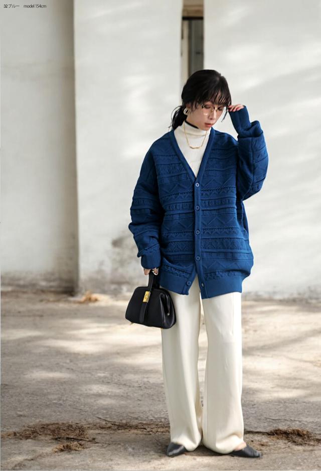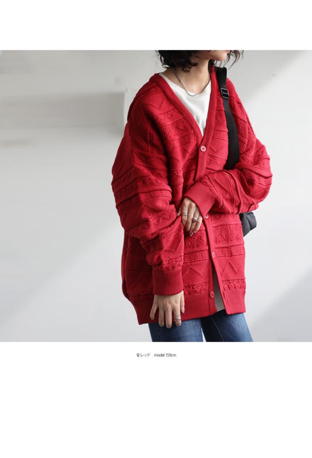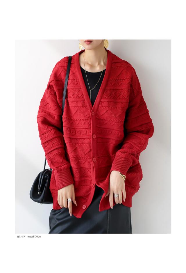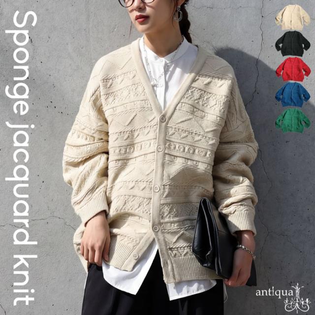 【検索ワード】ジャガードカーディガン カーディガン レディース トップス 長袖 ニットカーディガン 立体編み 3Dジャガード ニット 羽織り ニットカーデ Vネック 軽い 軽量 スポンジ スポンジニット カーデ 着痩せ 細見え 体型カバー ビッグシルエット オーバーサイズ 大きめ 大きいサイズ ユニセックス antiqua treecafe アンティカ ツリーカフェ 大人 おしゃれ 10代 20代 30代 40代 50代 60代 春 秋 冬 お洒落 カジュアル かわいい かっこいい あんてぃか