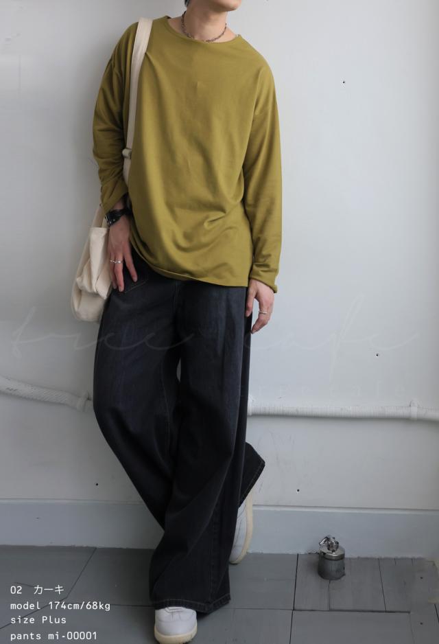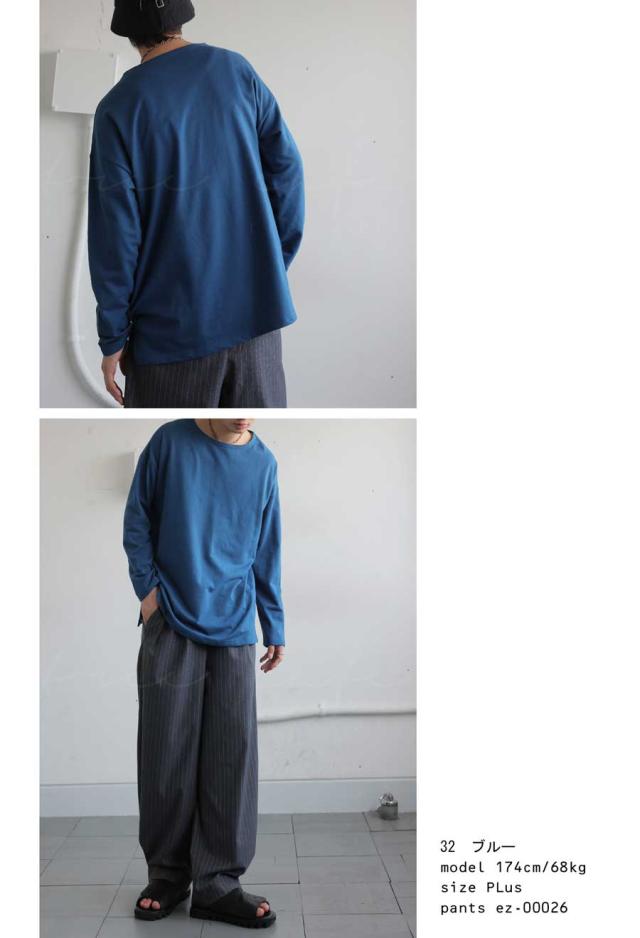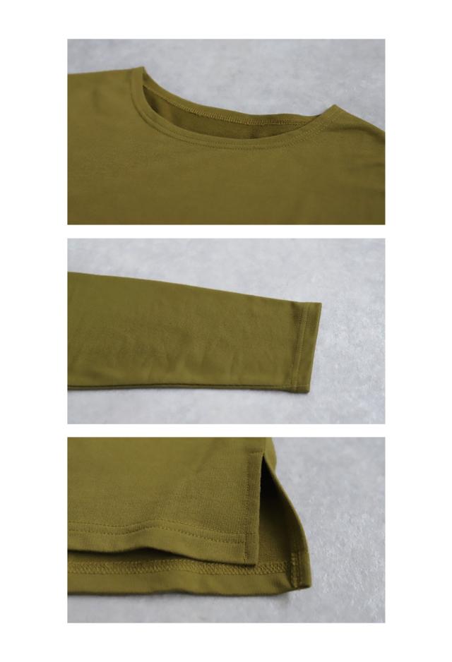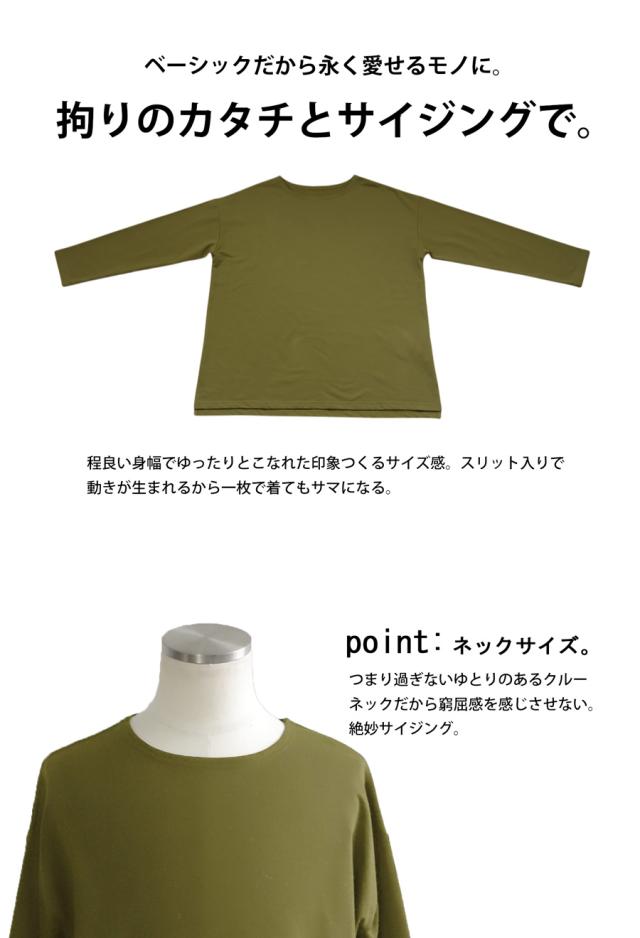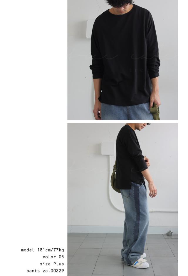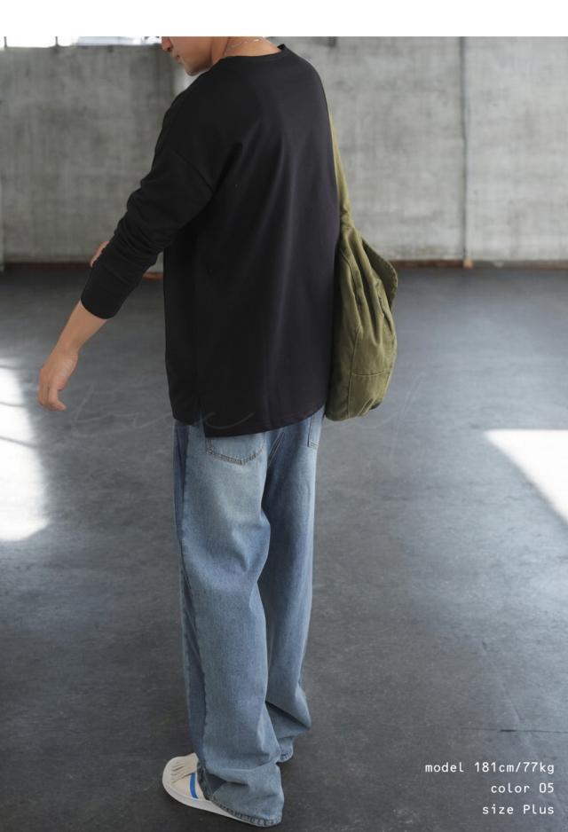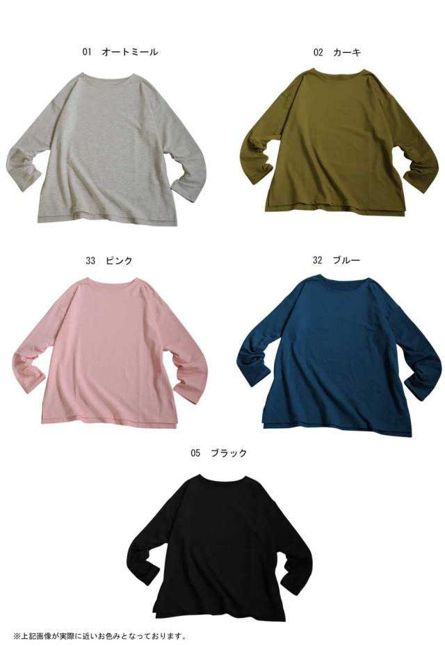 za-00244z 切り替え ゆったり シンプル クルーネック カットソー ミニ裏毛 綿 コットン スリット 定番 着回し ドロップショルダー オーバーサイズ ビッグシルエット 大きいサイズ