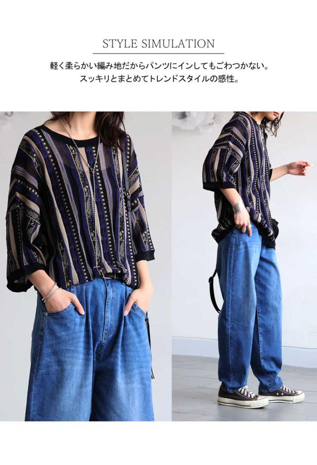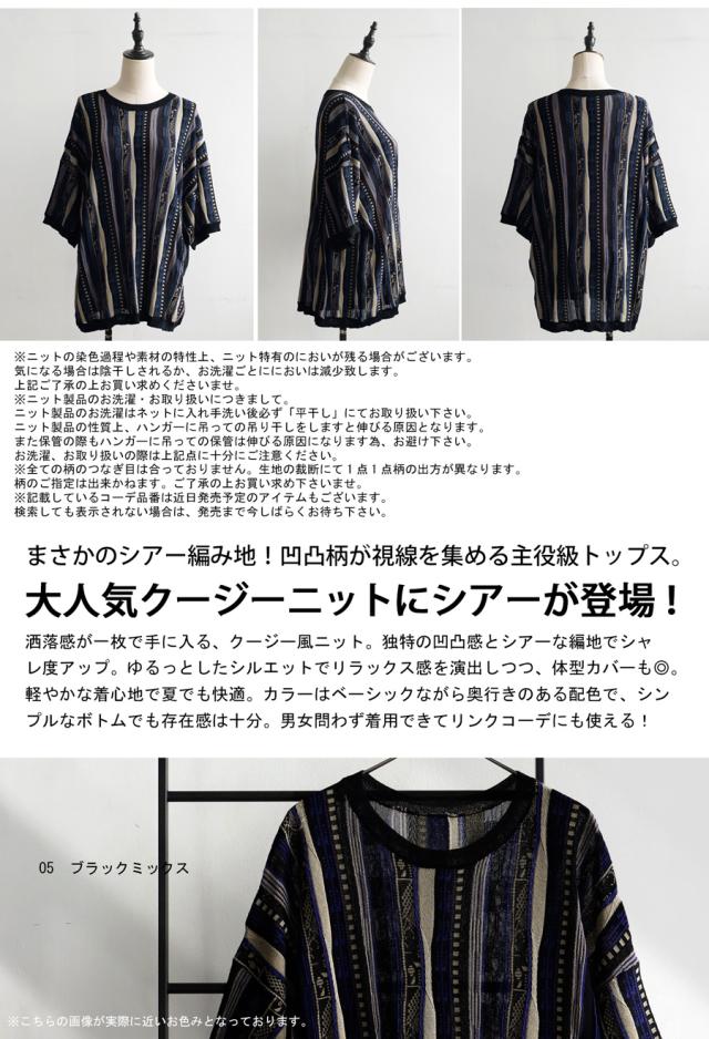 za-00256 半袖 シアーニット クージー風 トップス 体型カバー ドロップショルダー ユニセックス 夏素材 涼しい 薄手 リラックス ゆったり
