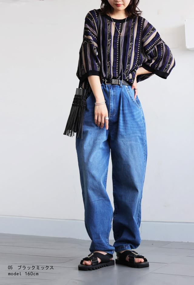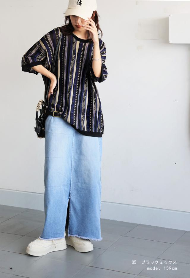 シンプルなパンツやスカートに合わせるだけで、装いにほどよいアクセントを添えてくれます。