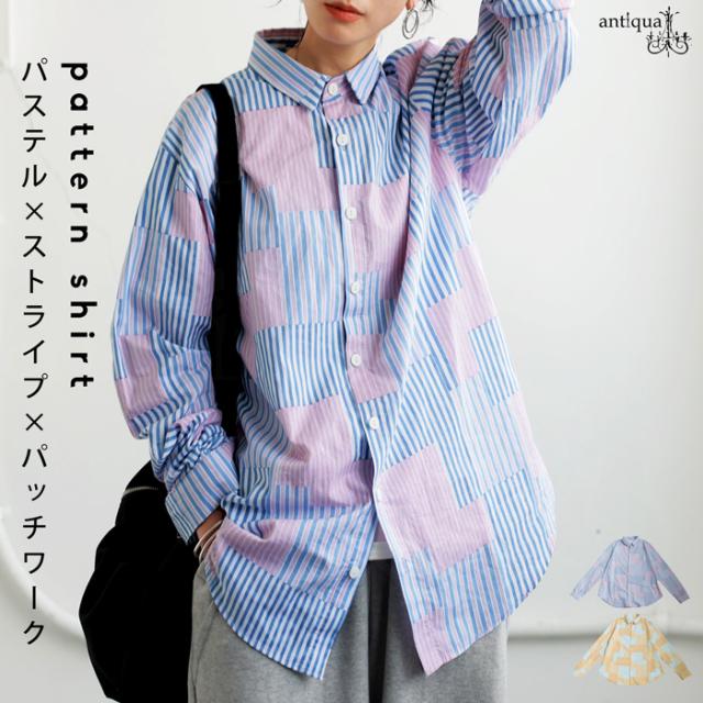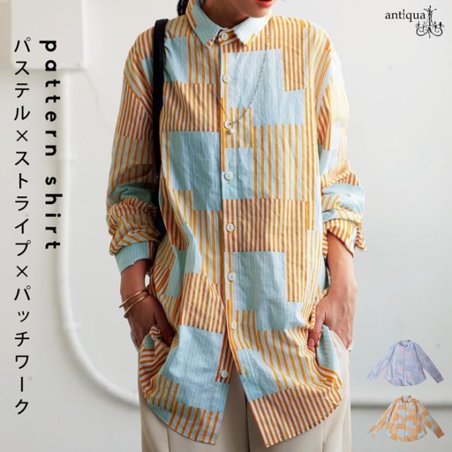 【検索ワード】ストライプシャツ 柄シャツ シャツ レディース トップス 長袖 切替 切り替え 羽織り ストライプ柄 ストライプ パッチワーク 柄 綿100 前開き ライン配色 配色 パターンシャツ パターン アクセントカラー パステルカラー パステル アクセント オーバーサイズ ゆったり 綿 コットン 綿混 立体感 個性派 シンプル カジュアルシャツ デザイン デザインシャツ ブラウス 体型カバー 細見え 華奢見え シワになりにくい 大きめ 大きいサイズ レイヤード 重ね着 ブルー 青 ピンク ぴんく オレンジ おれんじ ユニセックス antiqua treecafe アンティカ ツリーカフェ 大人 おしゃれ 10代 20代 30代 40代 50代 60代 春 夏 秋 冬 オールシーズン お洒落 カジュアル かわいい かっこいい あんてぃか
