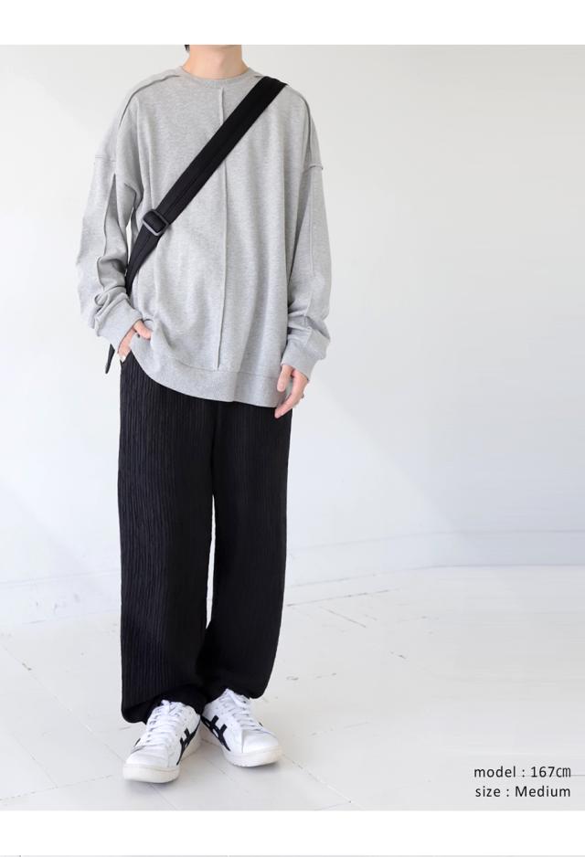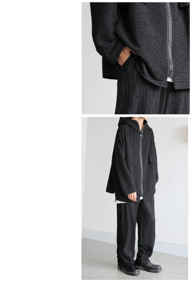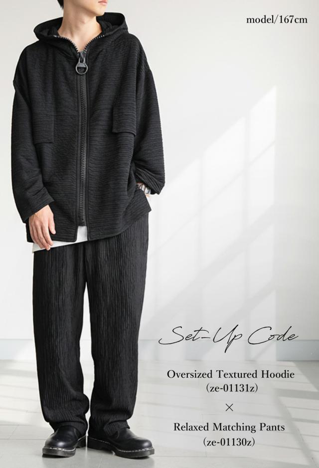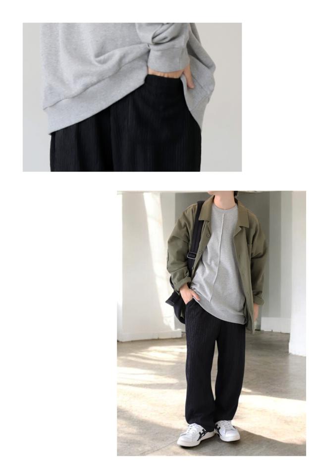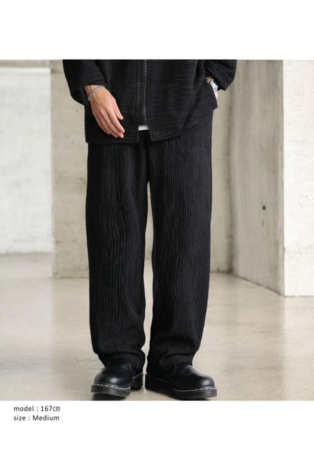 ze-01130z ストレートパンツ ワイドストレート シワ感 立体素材 ストレッチ ウエストゴム ゆったり ポケット付き ベルトループ付き シワになりにくい セットアップ ユニセックス