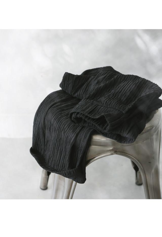表面にニュアンスのあるシワ加工を施した生地は、無地ながら奥行きのある表情を生み出し、シンプルすぎない存在感が魅力。