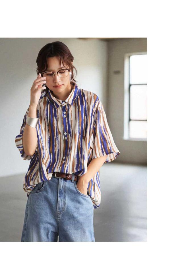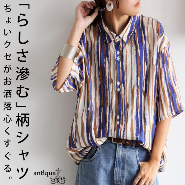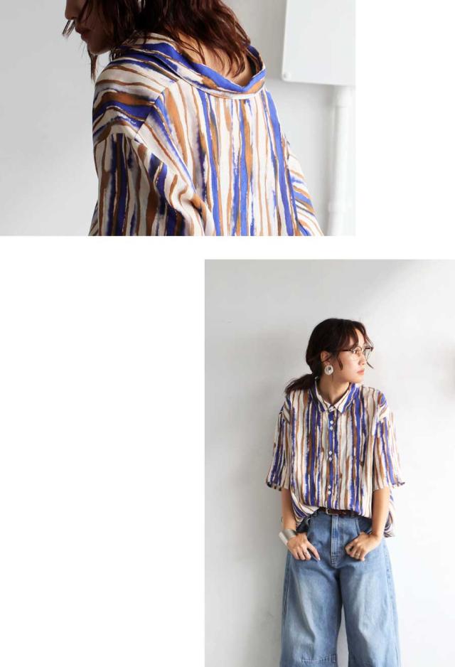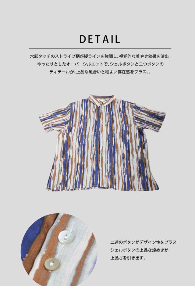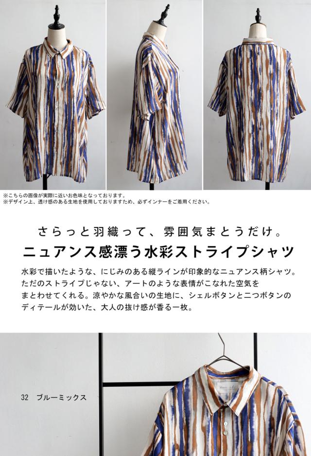 水彩ストライプシャツ レディース 半袖 シャツ 柄 送料無料・(80)メール便可
