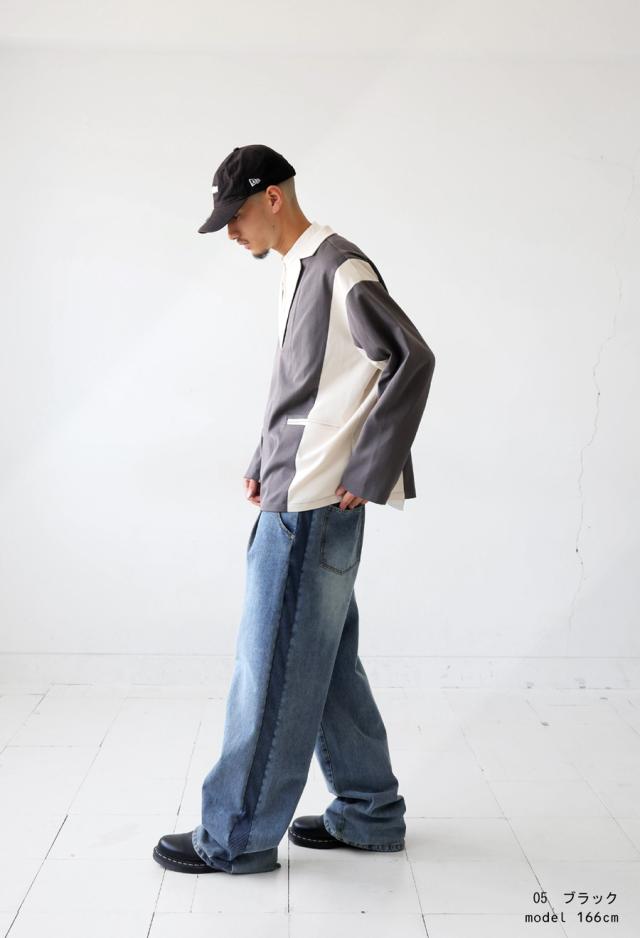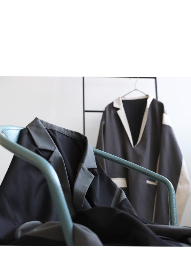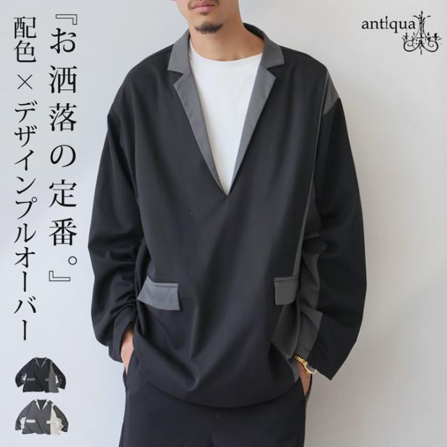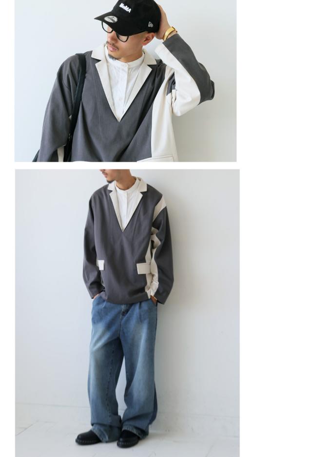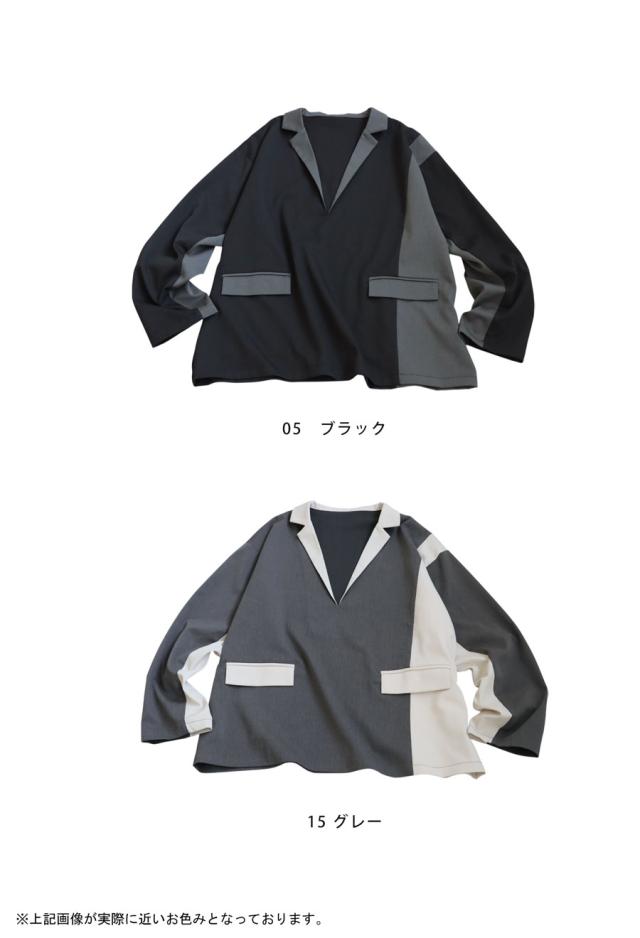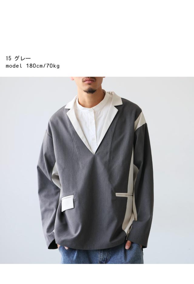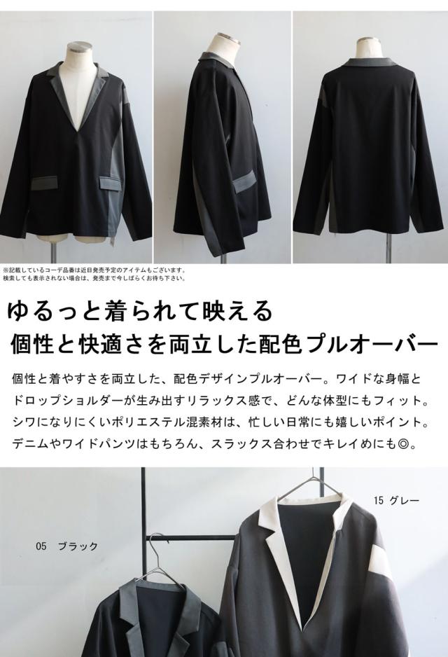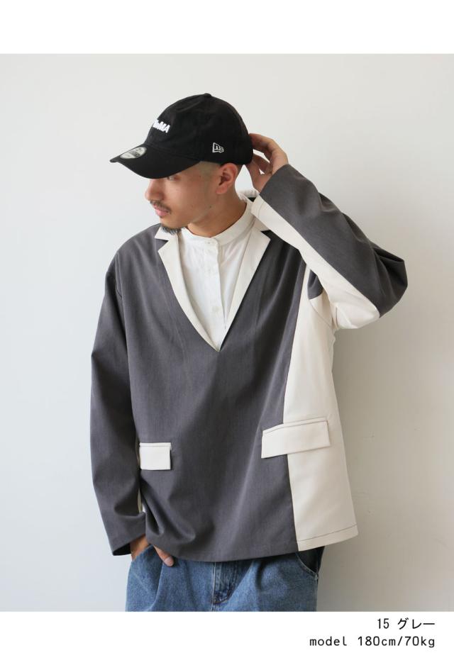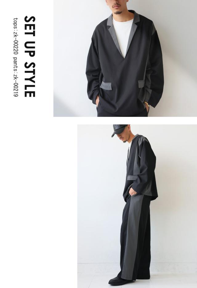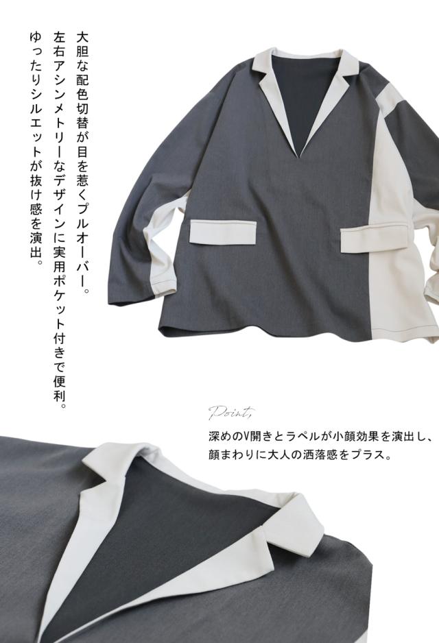 zk-00220z プルオーバー ジャケット襟 テーラード Vネック 配色 切替え 体型カバー ゆったり ワイドシルエット モード カジュアル レイヤード 着回し ポケット付き ユニセックス