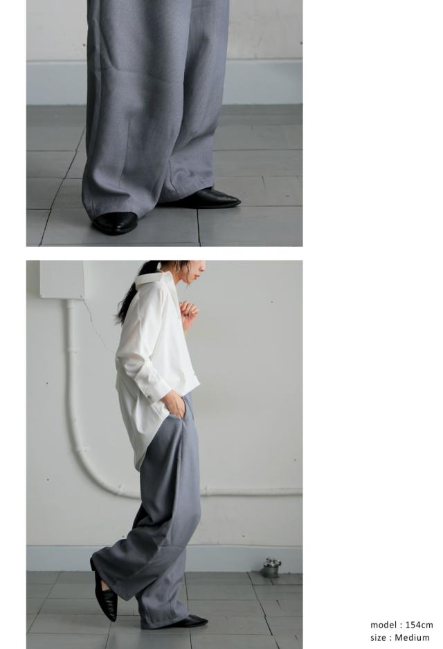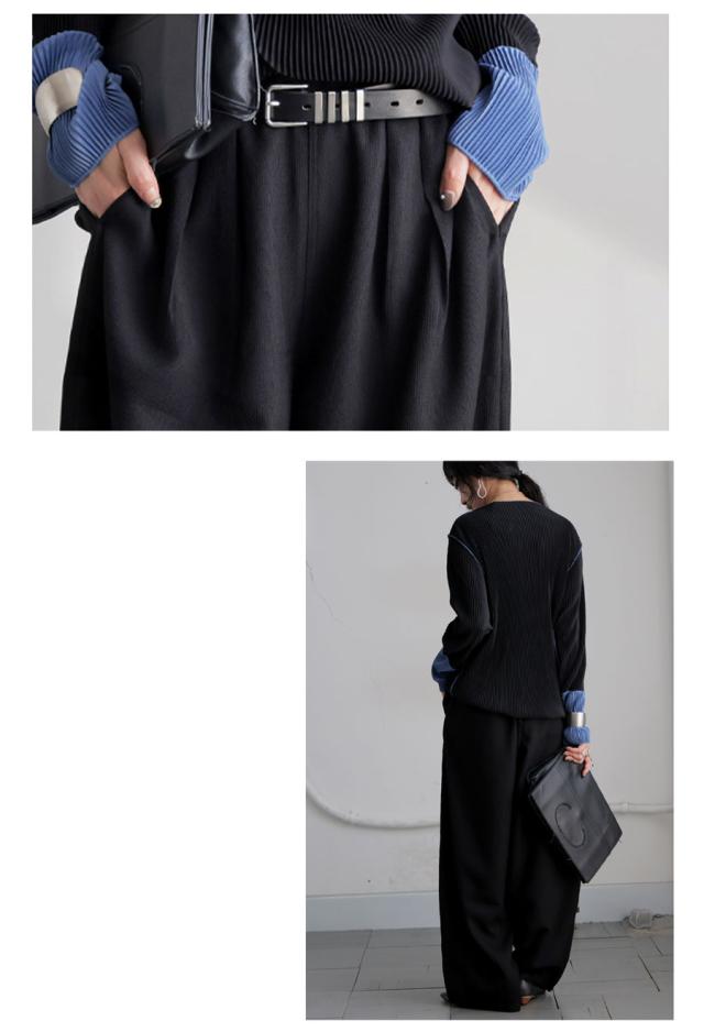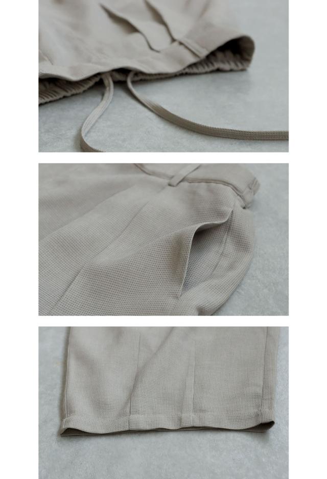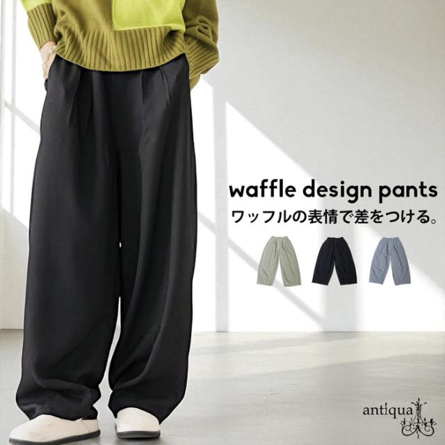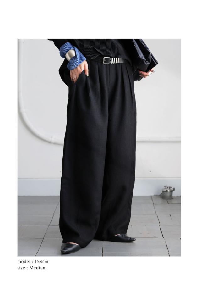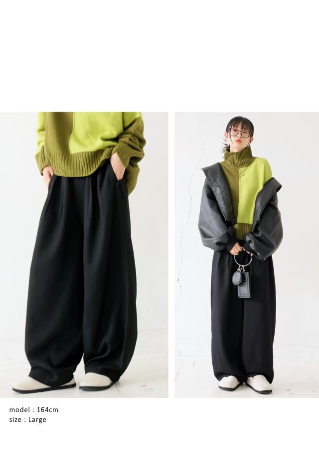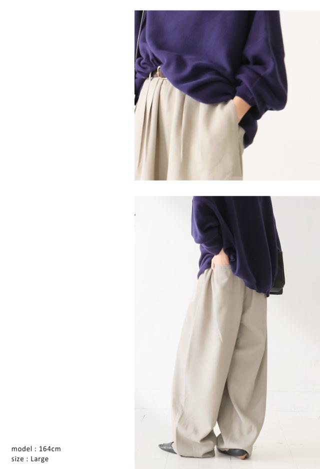 ウエストと裾にタックを施した立体感のあるワイドパンツは、きれいめにもカジュアルにも着こなせる万能デザイン。