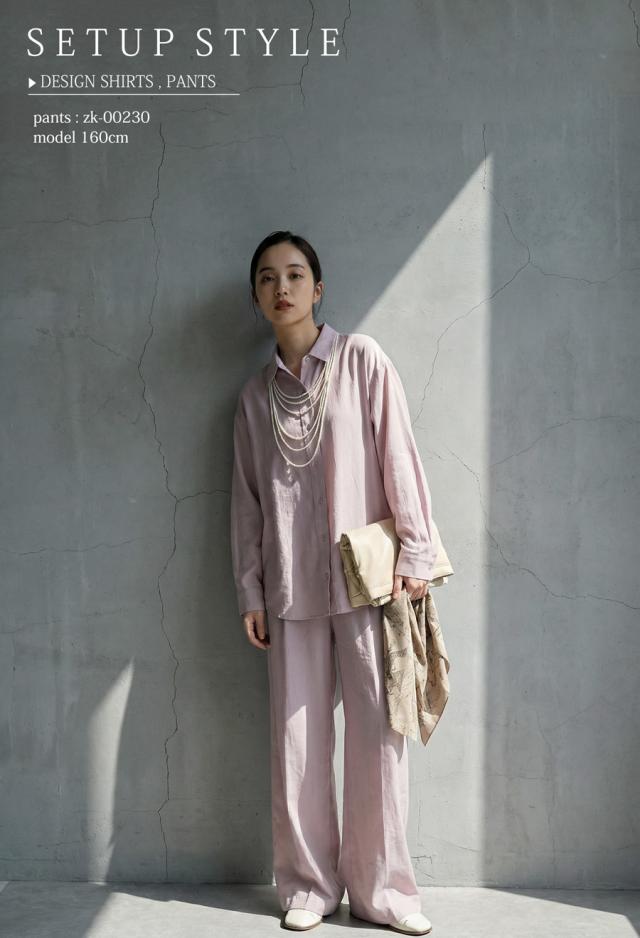 セットアップとしても着用可能で、同素材のパンツ(ZK-00230)と合わせれば統一感のあるコーディネートに仕上がります。