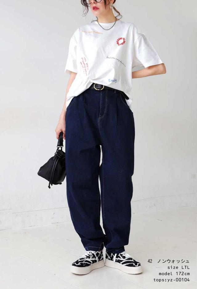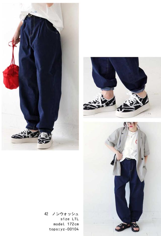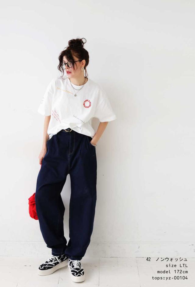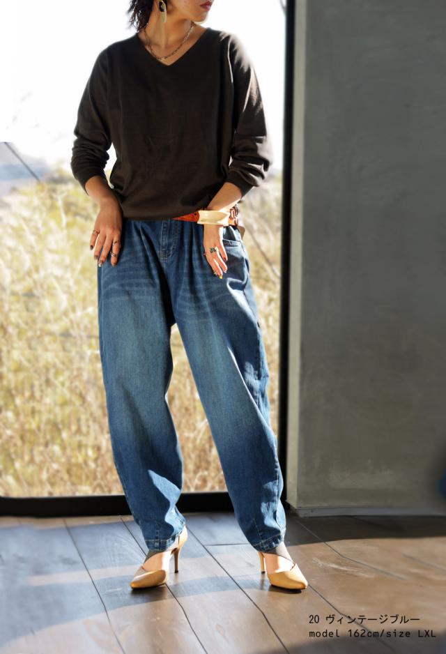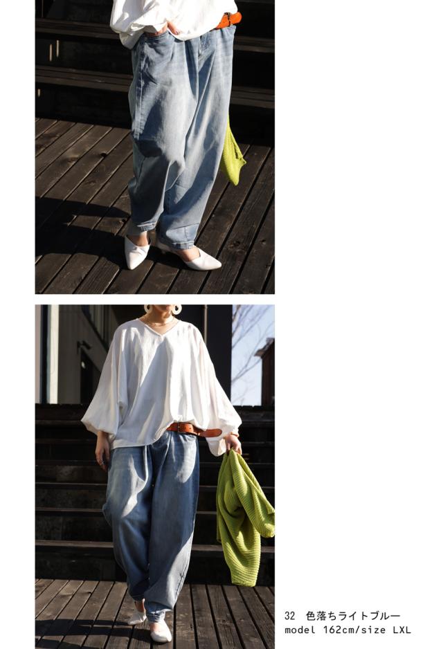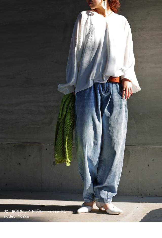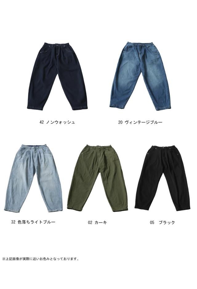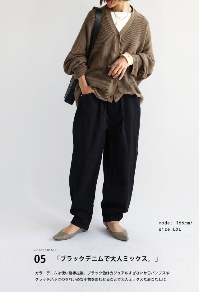 zl-00019 ロング ゆったり ルーズ ノンウォッシュ デニム カラーパンツ バルーン バルーンパンツ ジーンズ ジーパン Gパン 長ズボン テーパード ストレッチ 伸縮 ボリューム