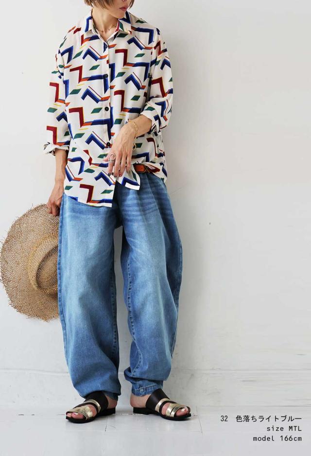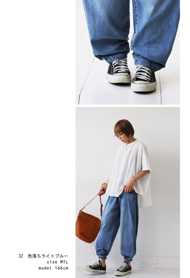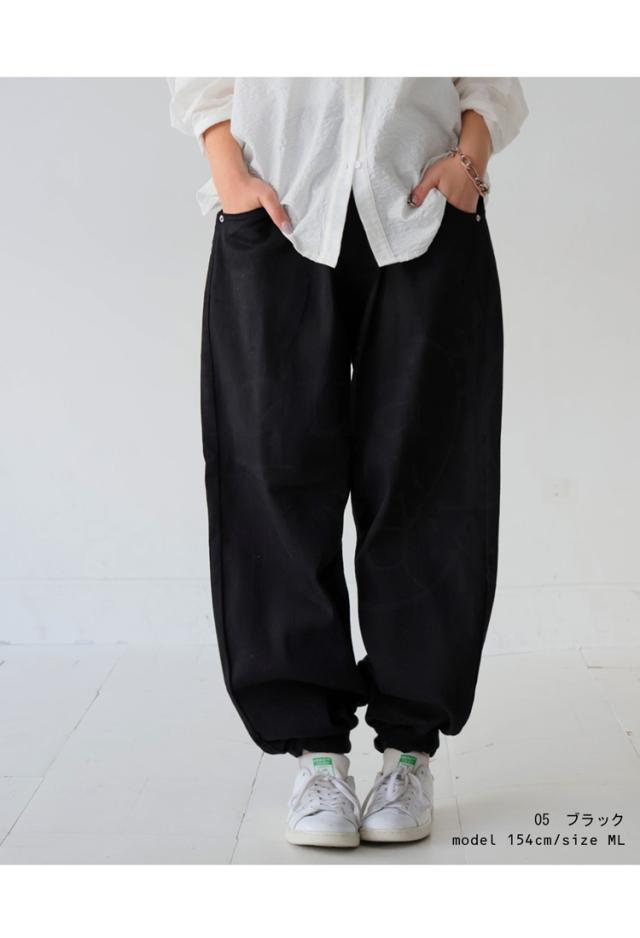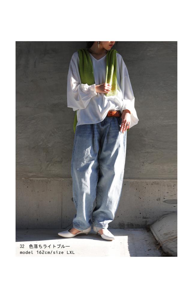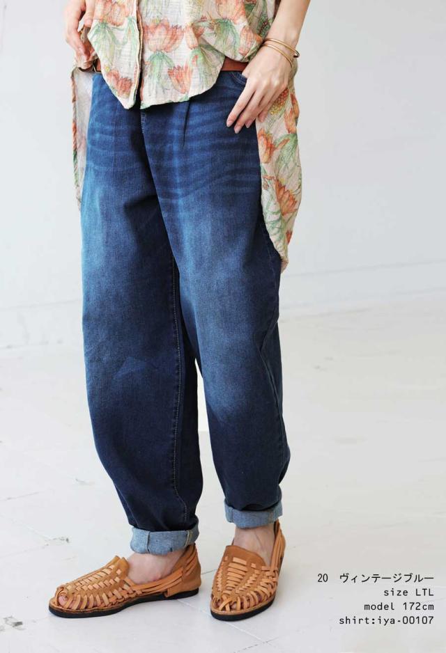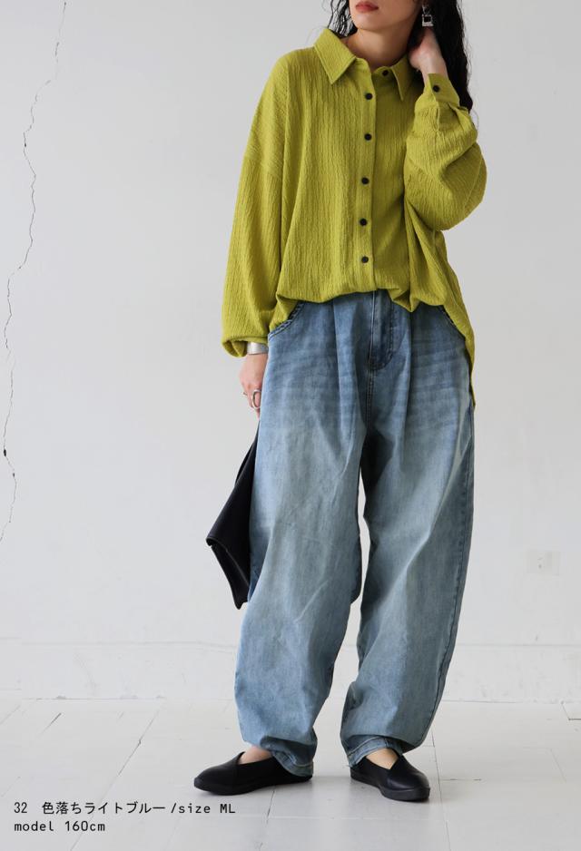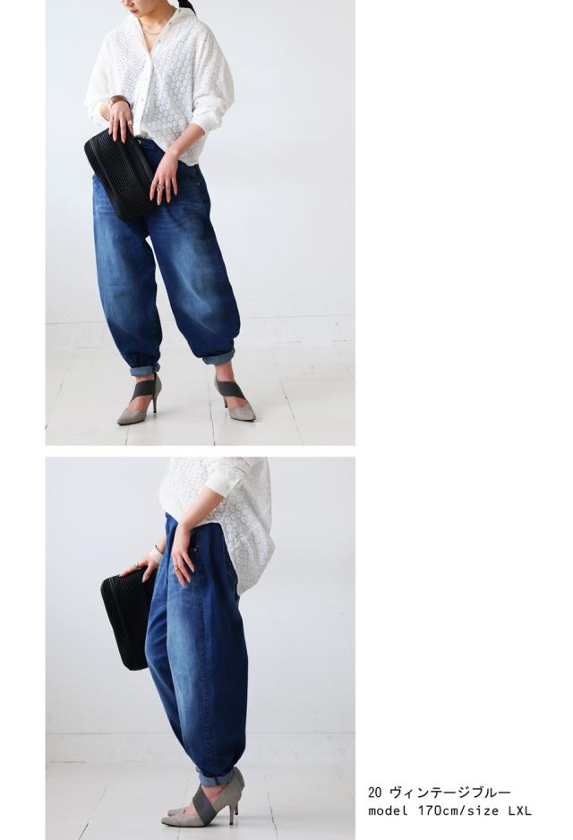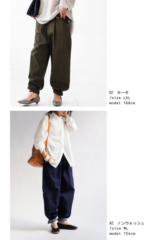 zl-00019 ロング ゆったり ルーズ ノンウォッシュ デニム カラーパンツ バルーン バルーンパンツ ジーンズ ジーパン Gパン 長ズボン テーパード ストレッチ 伸縮 ボリューム