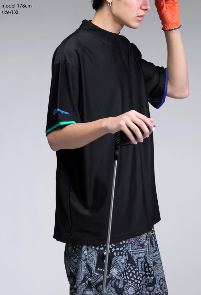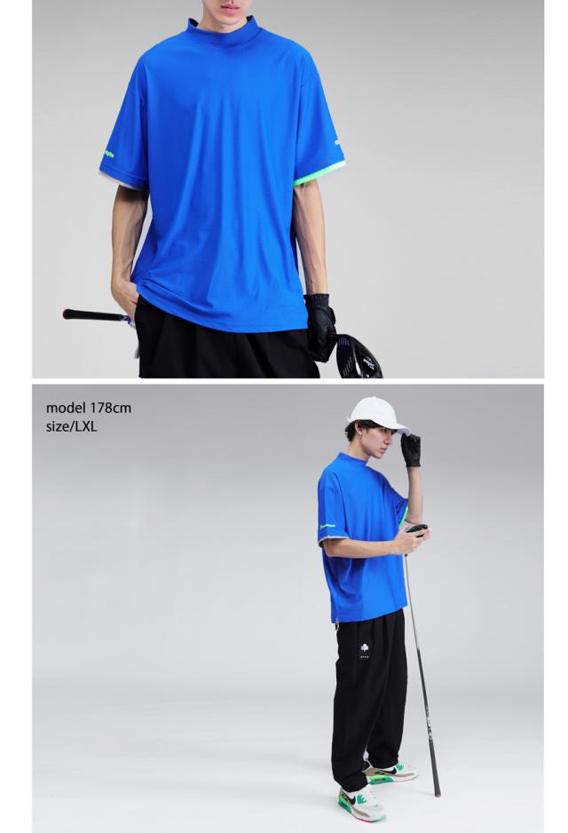 zst-00094z Tシャツ メンズ トップス 半袖 五分袖 配色 モックネック ロゴ ロゴプリント ロゴT シンプル ゆったり カットソー きれいめ 高級感 インナー レイヤード 重ね着