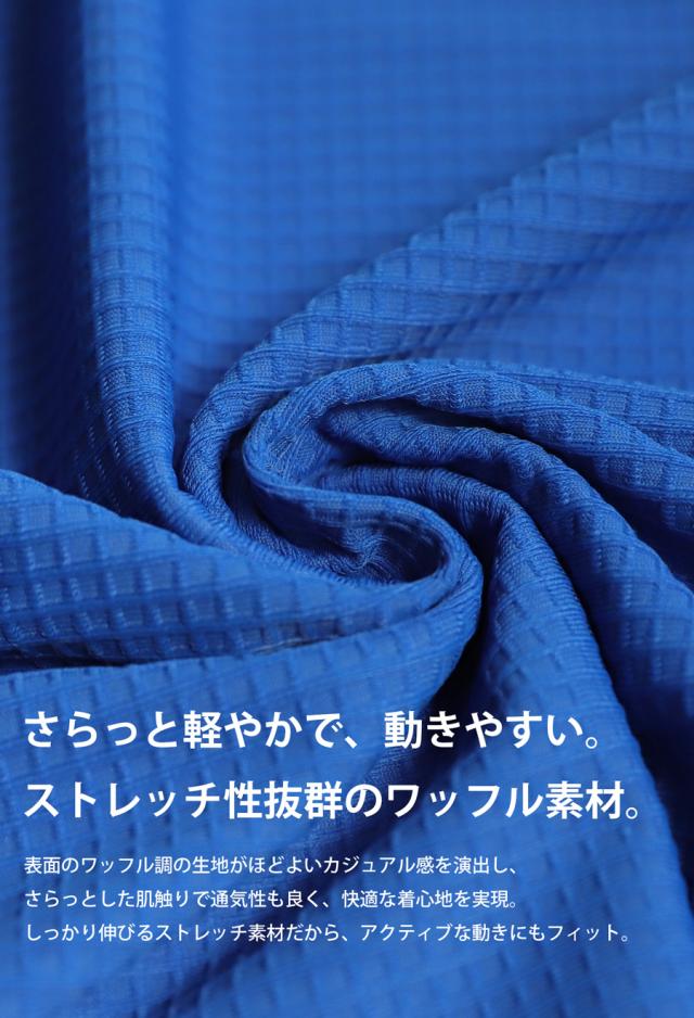 ・カジュアル感を演出するワッフル調の生地。