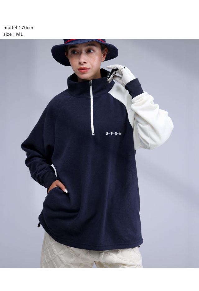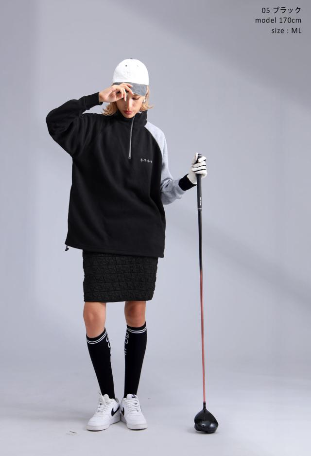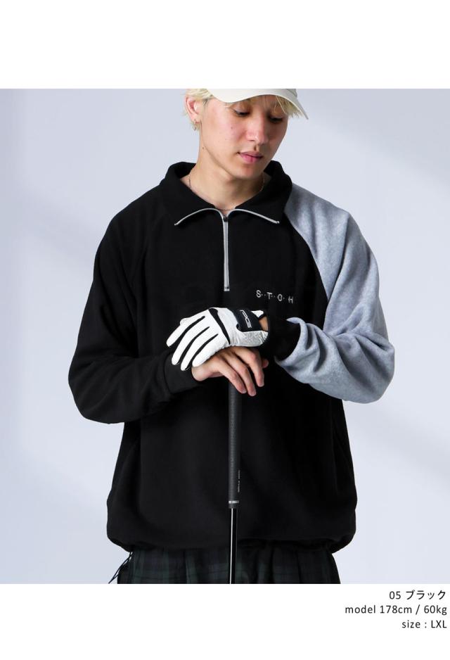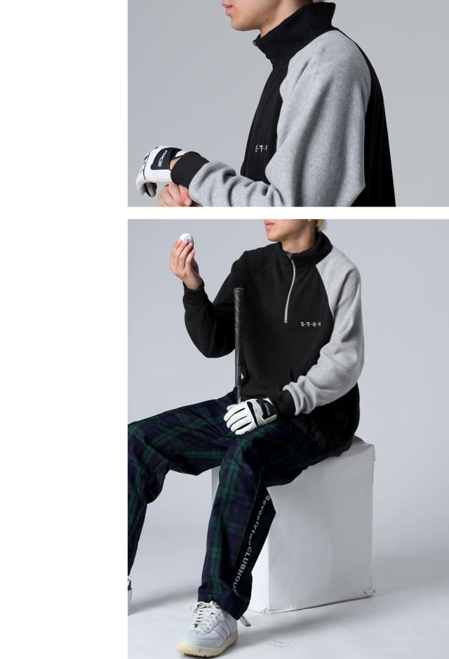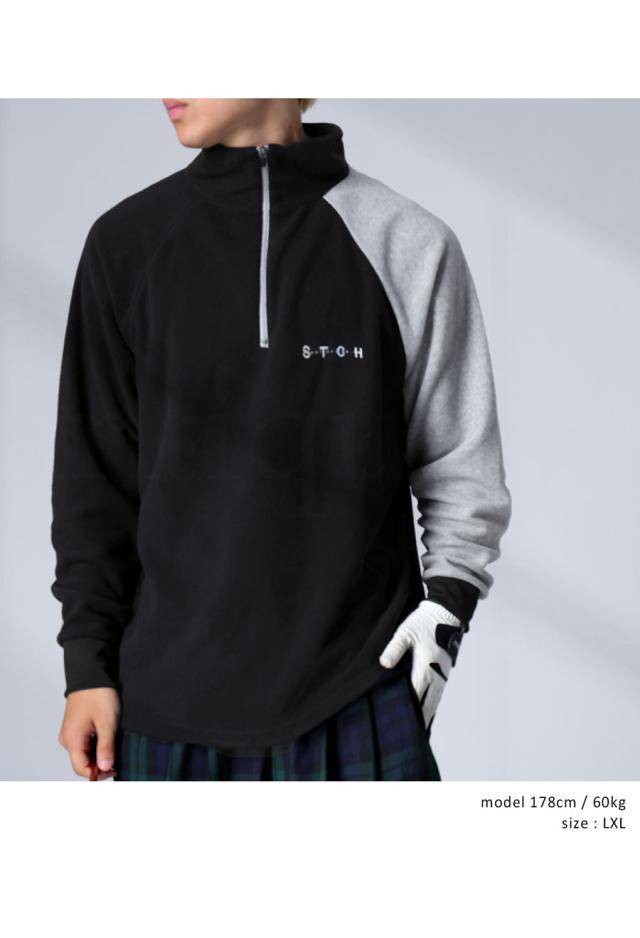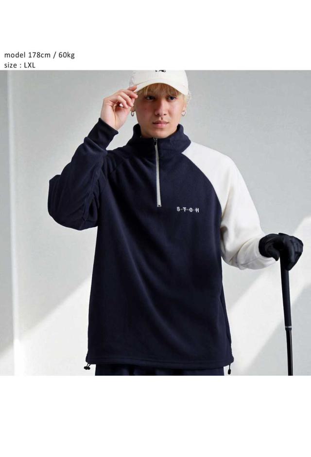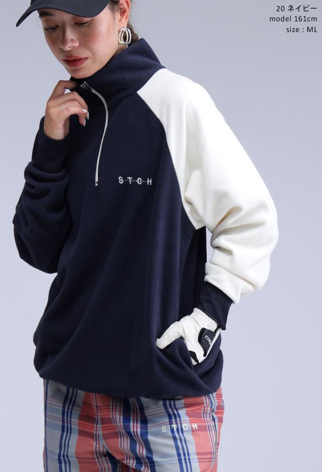 zst-00120 フリース 長袖 無地 ブランド ロゴ 刺繍 ワンポイント ハーフジップ 配色 防寒 暖かい あったか プルオーバー ハイネック スポーティ ゴルフウェア ユニセックス