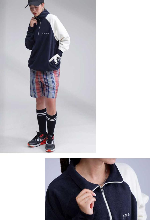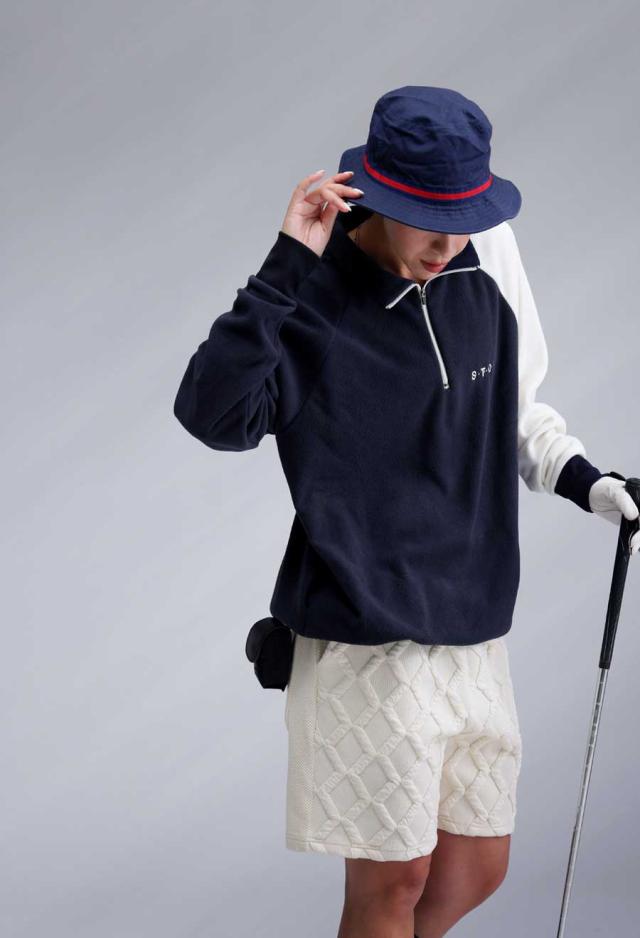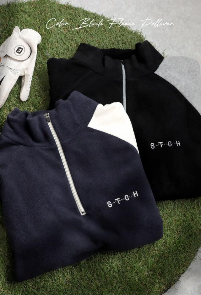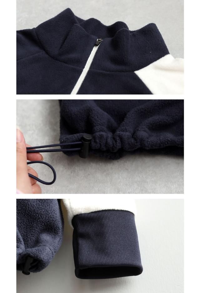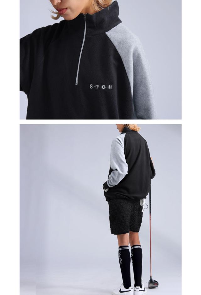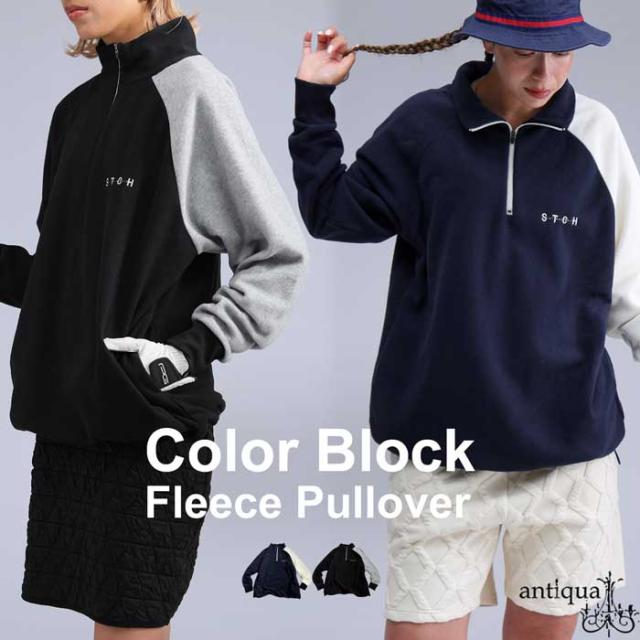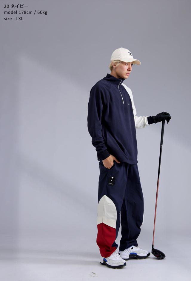 zst-00120 フリース 長袖 無地 ブランド ロゴ 刺繍 ワンポイント ハーフジップ 配色 防寒 暖かい あったか プルオーバー ハイネック スポーティ ゴルフウェア ユニセックス