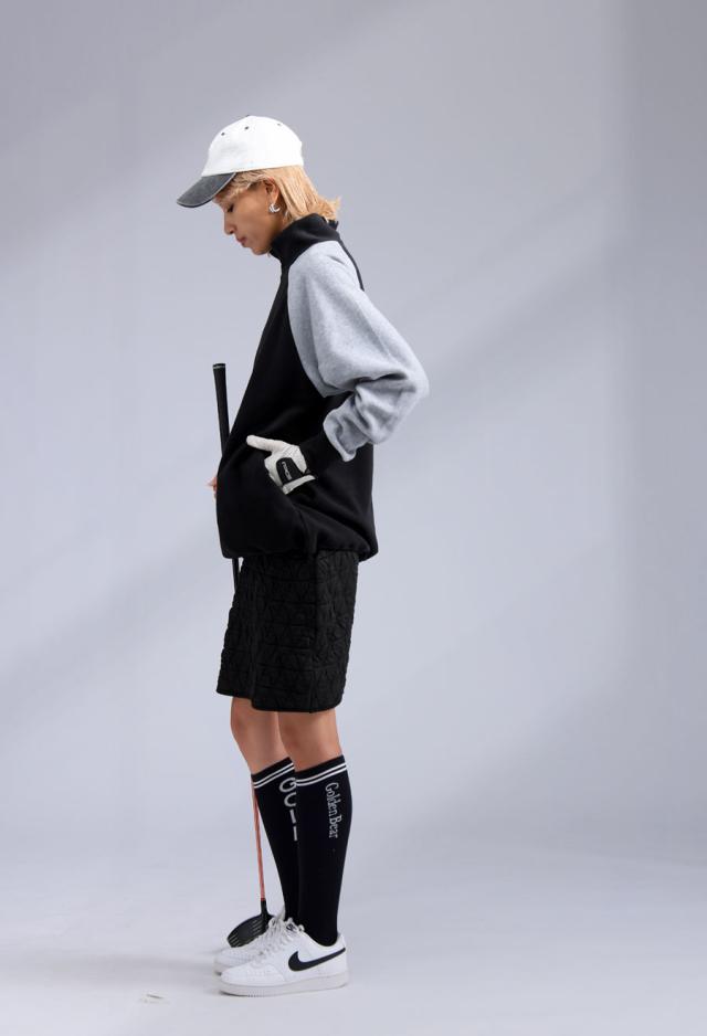 ハーフジップ仕様のネックラインで顔まわりをすっきり見せ、ジップの開け閉めで印象チェンジも自由自在。
