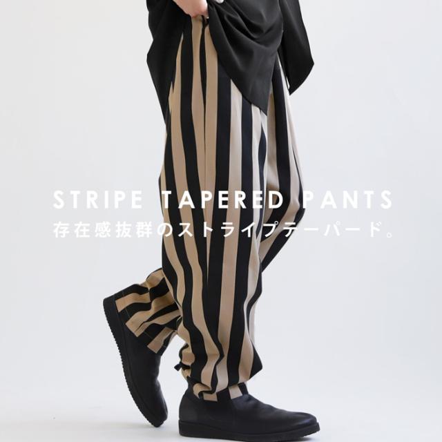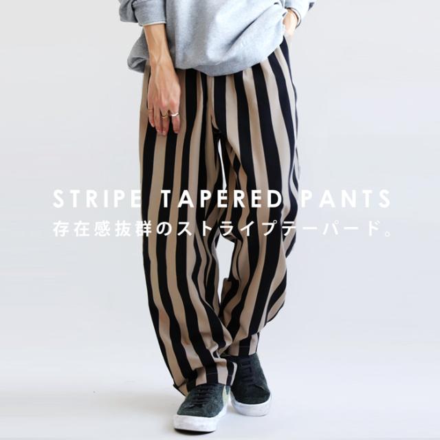【検索ワード】テーパードパンツ パンツ メンズ ボトムス ロング ストライプ柄 柄 柄パンツ シンプル テーパード スラックス 長ズボン ワイド ゆったり ウエストゴム 高級感 美脚 上品 細見え 脚長効果 レーヨン混 ポケット付き ユニセックス 男性 男 かっこいい カッコイイ カジュアル antiqua treecafe アンティカ ツリーカフェ メンズファッション トレンド コーディネート 通販 ブランド 春 夏 秋 冬 オールシーズン あんてぃか