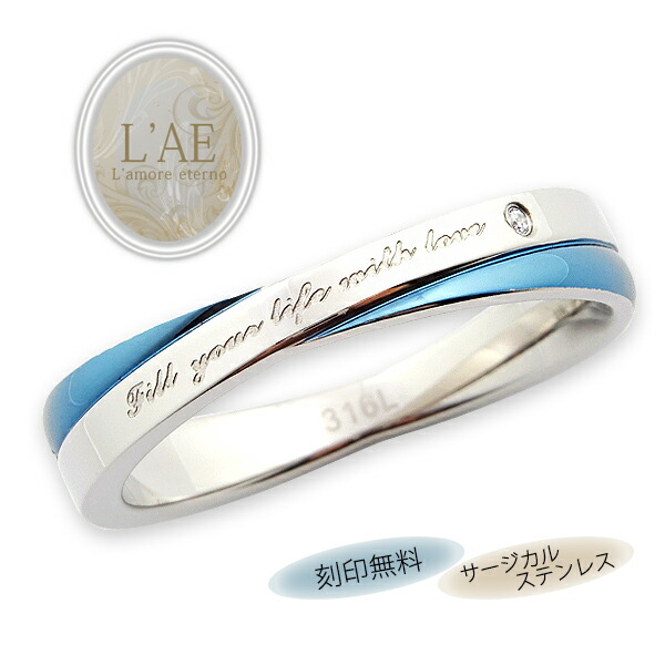 リング レーザー刻印無料 メッセージリング 記念日 誕生日 プレゼント ギフト 結婚指輪 マリッジ マリッジリング ペア リング ペアアクセサリー ブルー 名入れ 偶数サイズ メンズ レディース インフィニティ ホワイトデー お返し