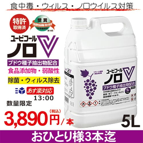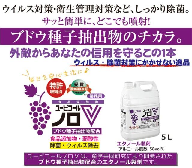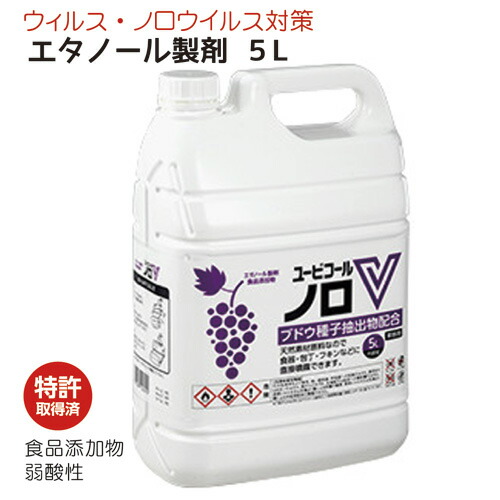 再入荷【数量限定 3本迄】あす楽対応/ 軽減税率 摂津製油 ユービコール ノロV 5L 業務用 食品添加物 エタノール製剤 アルコール ノロウィルス対策・衛生管理対策に ブドウ種子抽出物の力でしっかり除菌/お試し商品