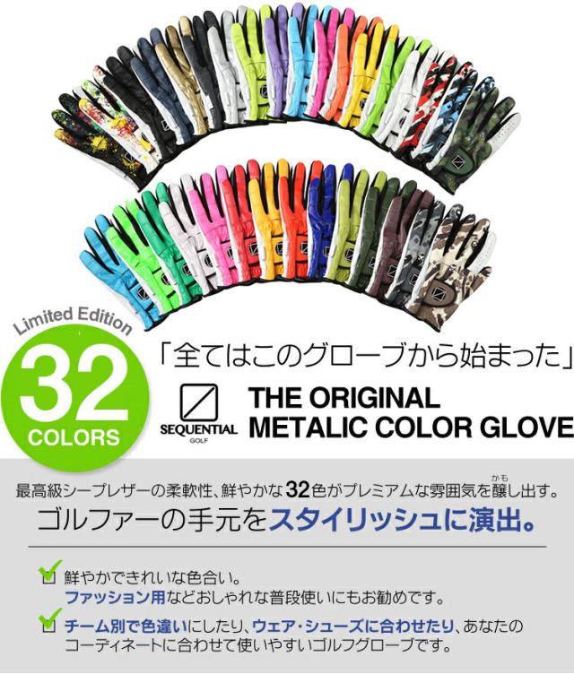 2024年継続モデル55%OFF 全32色豊富な色揃え発色抜群 シーケンシャルゴルフ メタリックカラー羊革 メンズゴルフグローブ 「SEQUENTIAL SQGC-001 カラーグローブ」 【ネコポス6枚まで対応】