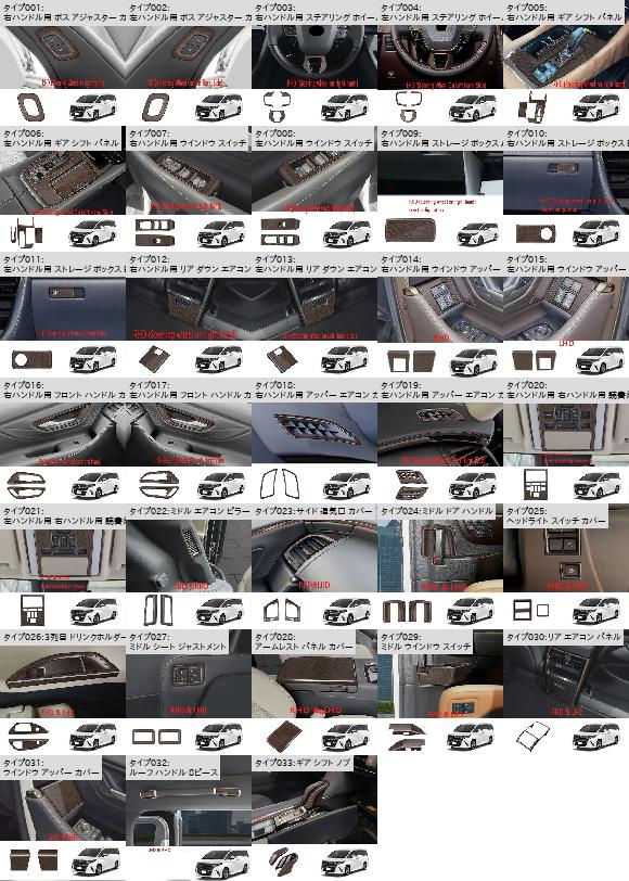 適用: トヨタ アルファード ヴェルファイア 40シリーズ 2023 2024 ABS 木目 ドア ハンドル ウインドウ スイッチ リア エアコン パネル SR-AA-3930 バリエーション: