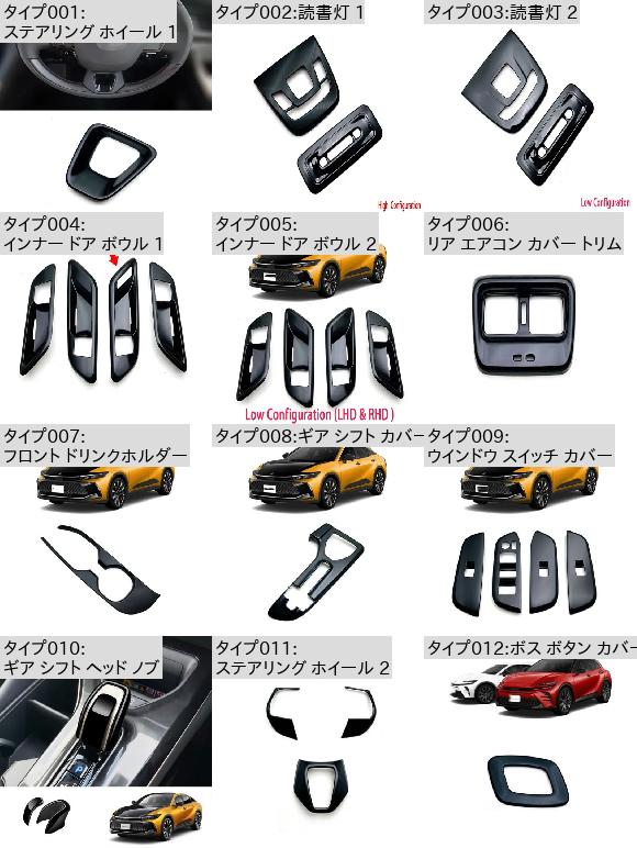 ・タイプ004:インナー ドア ボウル 1〜タイプ009:ウインドウ スイッチ カバー×タイプA:左ハンドル・タイプB:右 ハンド ドライバ