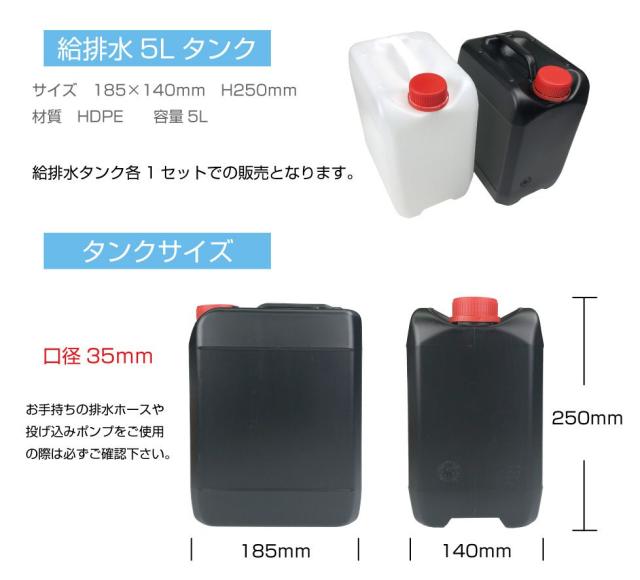 | セット内容 | 給排水 5Lタンク×2(ブラック・ホワイト各1個) |