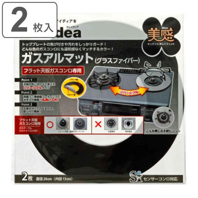 ガスマット ガスアルマット フラット天板コンロ用 グラスファイバー 直径24cm 2枚入 ( リバーシブル ガスコンロ用保護マット フラット天板ガスコンロ専用 プロテクトシート 汚れ防止 防汚シート 日本製 ガスコンロ 保護マット )