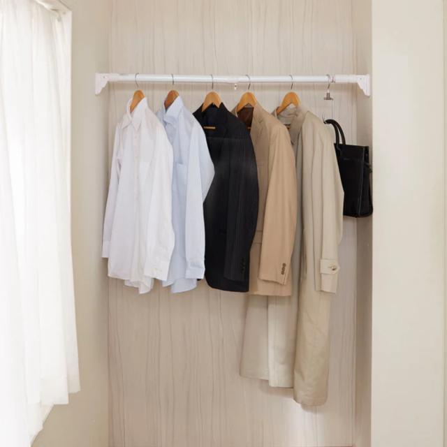 幅広いテイストに馴染むシンプルな突っ張り棒です。クローゼット、キッチン、ランドリーなどのデットスペースを利用して収納力をアップできます。壁に穴をあけないので、賃貸住宅でも手軽に収納スペースを増やせます。