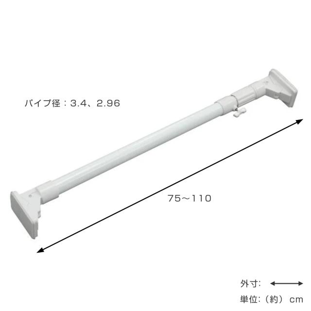 | サイズ | 約 幅75〜110×奥行6.5×高さ10(cm) パイプ径:3.4cm、2.96cm |