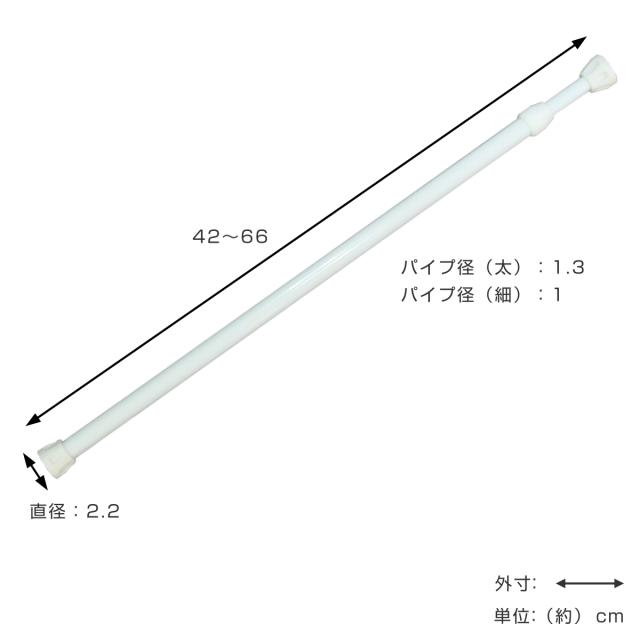 | サイズ | 直径:約 2.2(cm) 約 幅42〜66(cm) パイプ径:直径約 1.3cm、1cm |