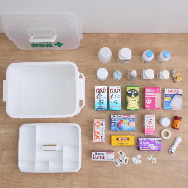 常備薬、絆創膏、包帯、体温計等まとめておくと安心の救急箱