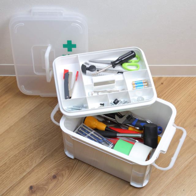 救急箱としてはもちろん、工具用品やステーショナリー、趣味のグッズなどを収納するツールボックスとしてもお使いいただけます。雑多になりがちな小物類がすっきりと片付きます。