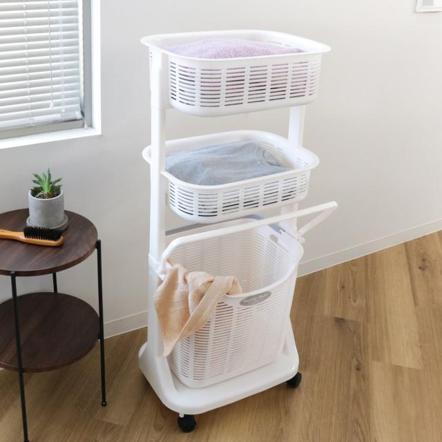 上段と中段・下段で分別しながら使える3段タイプのランドリーバスケットです。圧迫感を与えにくいサイズ感で、一人暮らしやワンルームにお住まいの方にもおすすめです。