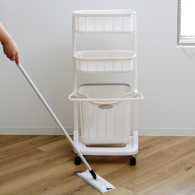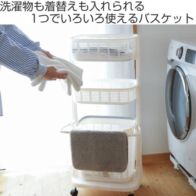 ランドリーバスケット バスマット干し付き 3段 洗濯かご ( ランドリーボックス ランドリーラック 脱衣かご 収納 ラック 棚 三段 洗濯カゴ バスケット 洗濯物入れ 脱衣カゴ キャスター付 )
