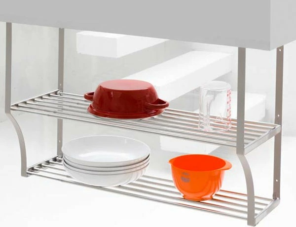 壁面や吊戸棚下の空いているスペースに設置できる「ネジ止めタイプの水切り棚」です。水が切れやすくサビに強いステンレス製のパイプ棚で、縦の空間を上手に使えます。また、別売りのワンタッチ支柱を使えば壁に穴を開けることなくシンク奥や横の空いているスペースに設置することもできます。