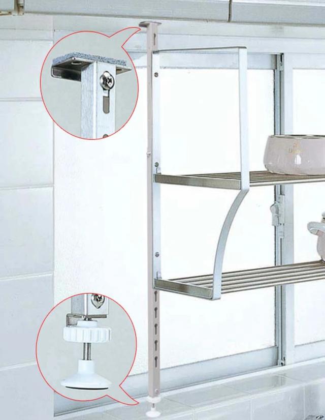 ●ねじ止めできない場所でも、「ねじ止めタイプ」の水切り棚が設置できるつっぱり支柱です。