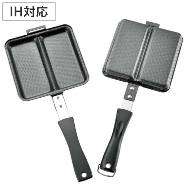 ホットサンドメーカー IH対応 鉄製 両面焼き 直火 ダブル ホットサンド用フライパン ( ガス火対応 鉄フライパン 両面 エンボス加工 日本製 仕切り付きフライパン ホットサンド 耳まで焼ける お菓子作り お弁当作り 製菓道具 )
