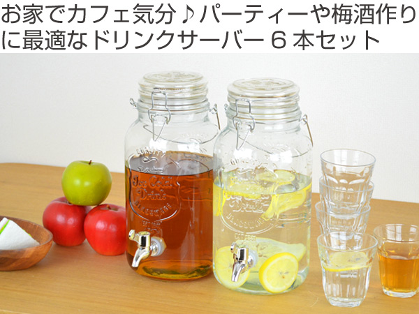 ドリンクサーバー 4L ガラス 蛇口付き 6個セット ( 梅酒 果実酒 ウォーターサーバー ガラス瓶 ガラス製 瓶 ドリンクディスペンサー サングリア ジュース作り )