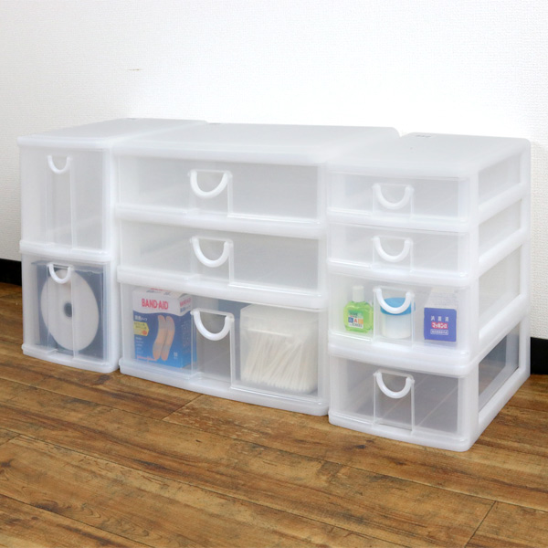 シリーズでそろえることで、統一感が生まれスッキリとした印象になります。細々とした日用品、雑貨、食品ストック、コスメ、お薬など小物の整理にぴったりです。豊富なサイズバリエーションから自分仕様にカスタマイズをお楽しみください。