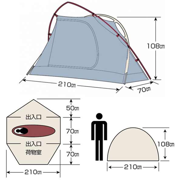 ![]() SOLO TENT 広く高さのある前室と荷物室兼用後面出入口を装備し、ポールを色分けする事で設営も迷わずスピーディーに。快適装備をプラスしたソロテントです。 ![]() ![]() 前・後面は出入口兼荷物室 前室には、高さと広さを持たせたワイドな出入口があります。後室にも出入口を装備し、前室が荷物で塞がっていても出入りができます。 ![]()
