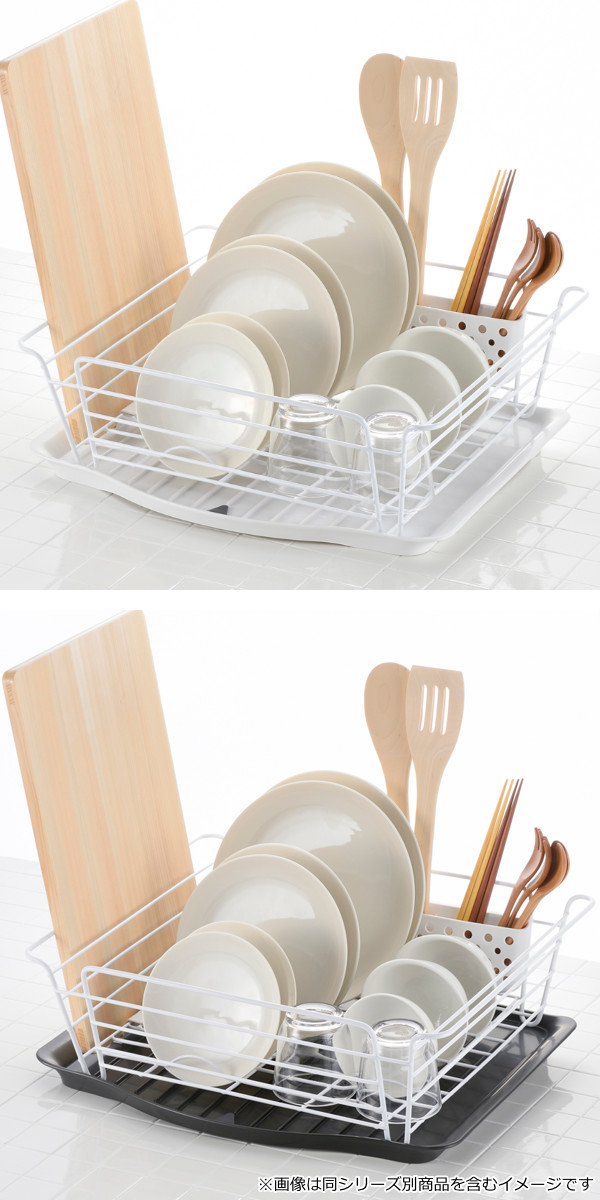 同シリーズ別売りの「デッシュドレイナーL」と組み合わせると、より便利にお使いいただけます。カラーの組み合わせも自由なので、ホワイト×ホワイトでカラーを合わせたり、ホワイト×ダークグレーでお洒落にしたりと楽しむのもおすすめです。